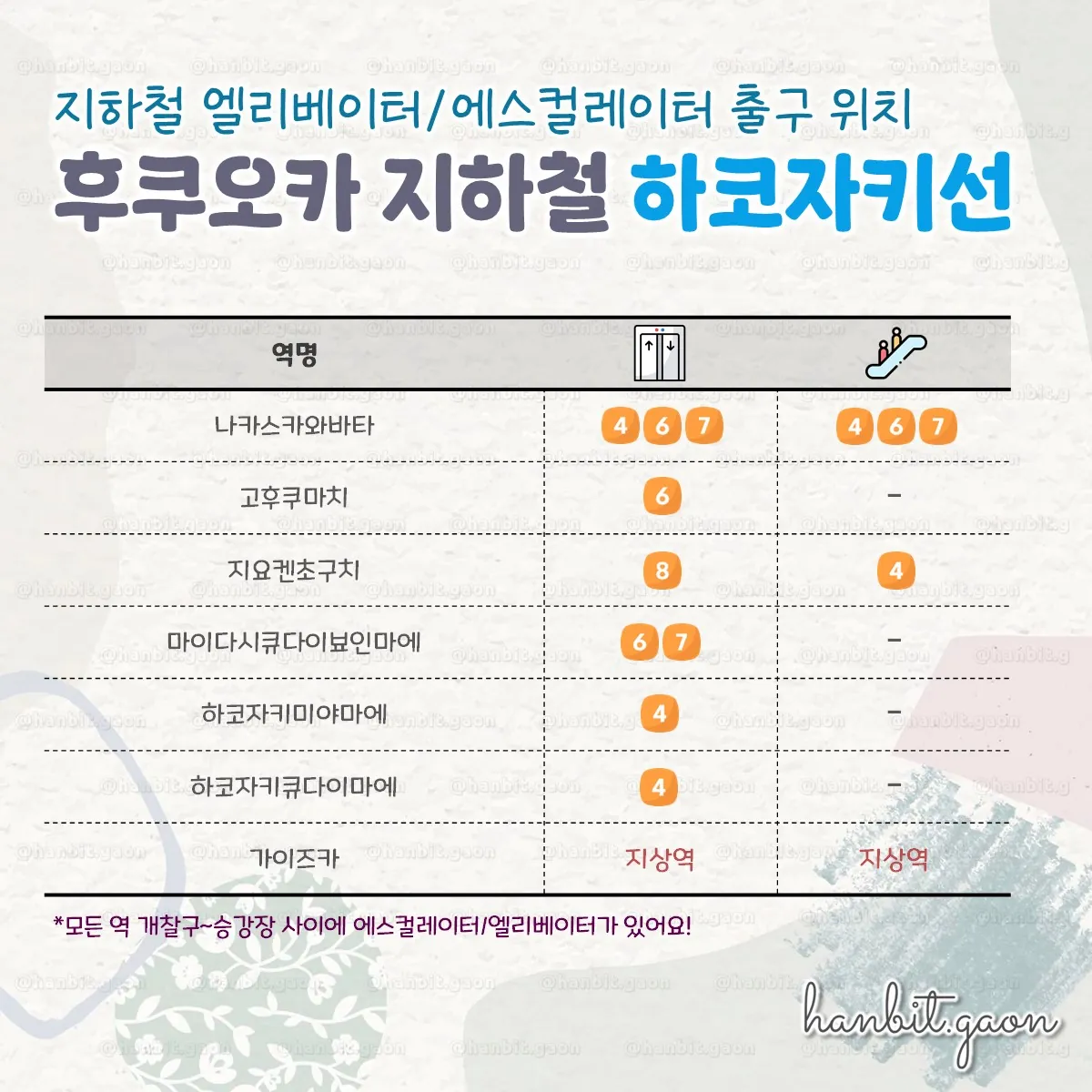 후쿠오카 지하철 엘리베이터/에스컬레이터 출구 위치 한 눈에 알아보기!