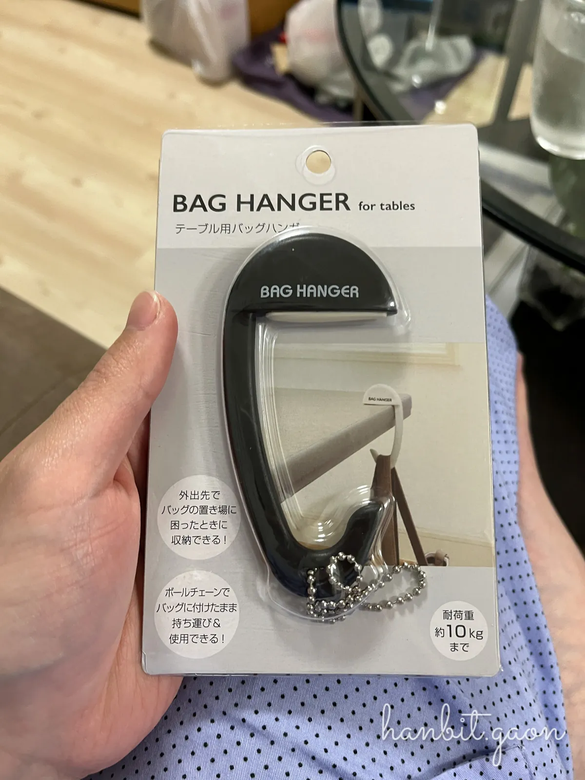 테이블 모서리에 걸어서 임시로 가방걸이로 만들어주는 아이템이에요 😲