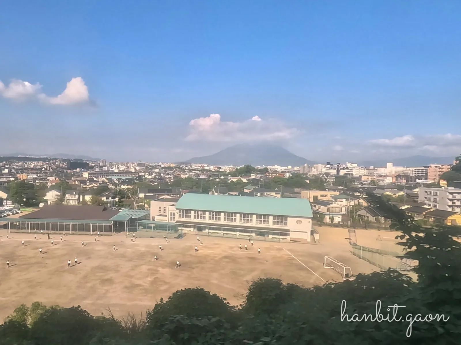 학교 운동장 너머로도 보이는 사쿠라지마!