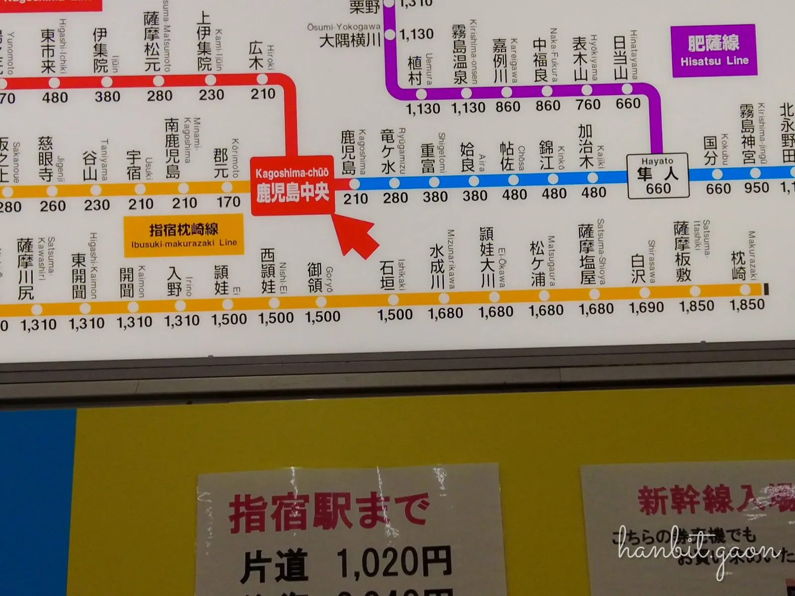 가고시마추오역에서 마쿠라자키역까지는 1,850엔!