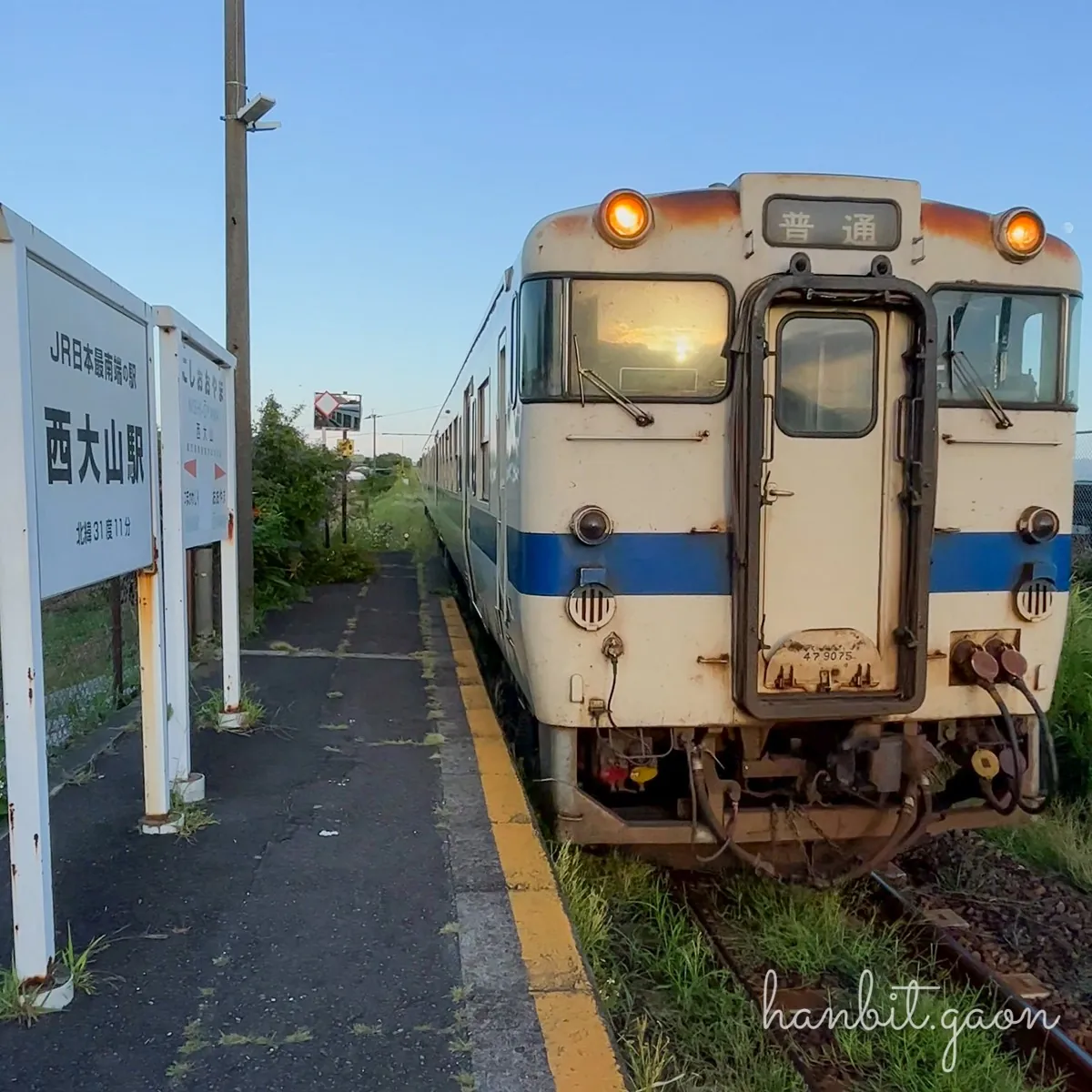 야마카와역에서 니시오야마역까지 백팩을 메고 햇빛 쨍쨍한 무더운 날씨에 걸으려니 체력이 꽤나 소진되어서 창밖을 가만히 바라보며 종점까지 향했네요 😅