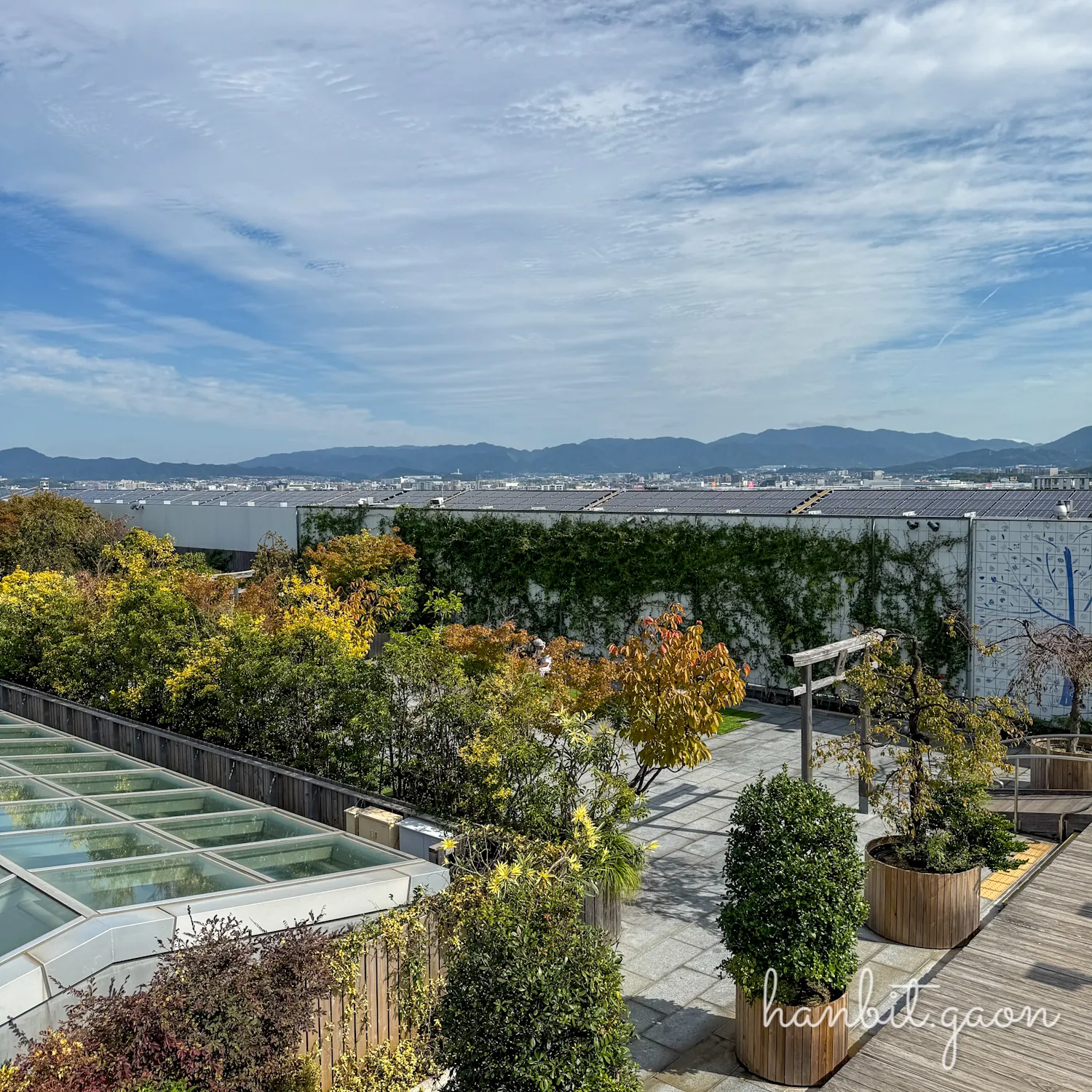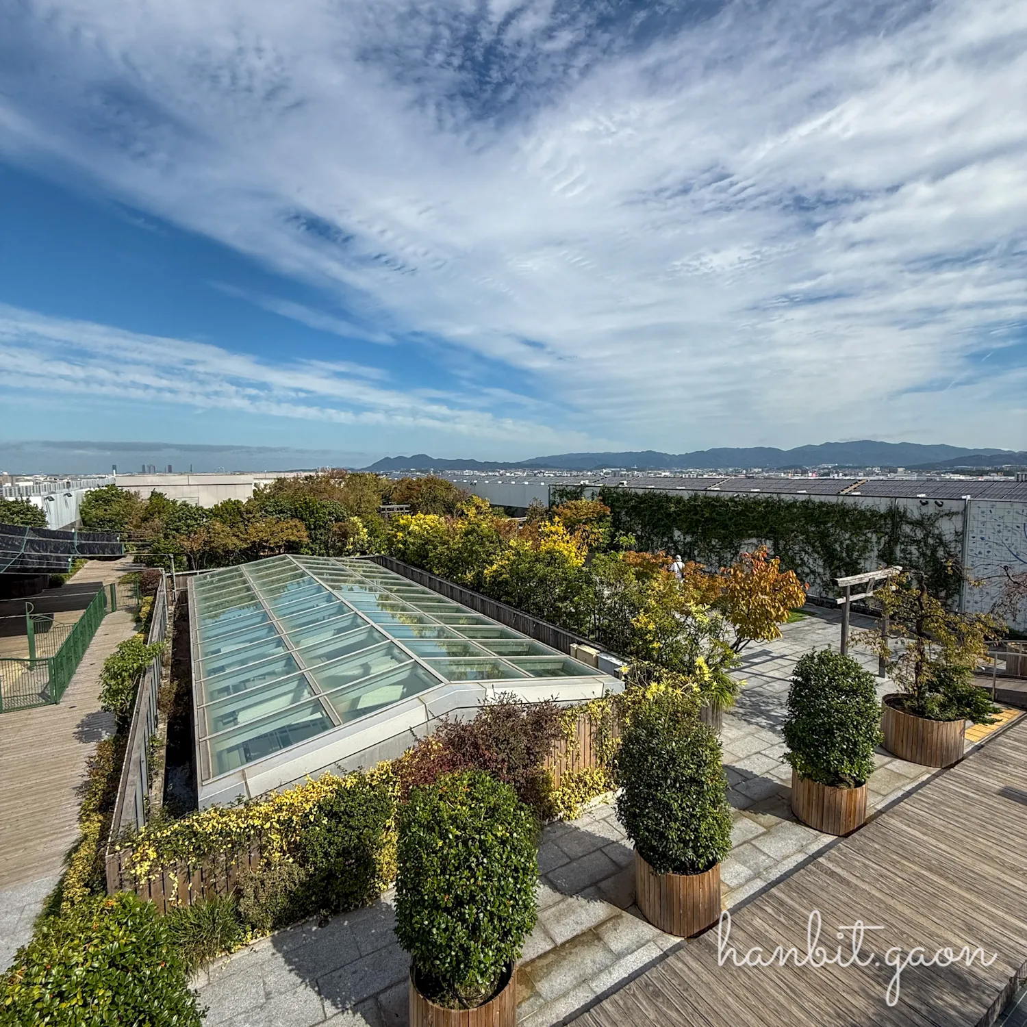 하카타역에 있는 쇼핑몰 아뮤플라자 하카타 10층에서 한 층을 올라가면 RF층(옥상층)인데, 거기에 옥상정원이 있어요!