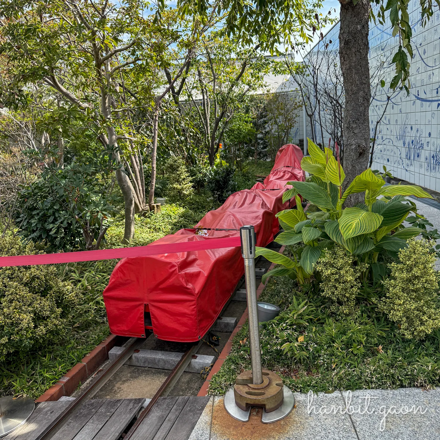 지금은 운행하지 않고 있는 미니열차 '츠바메 열차'는 이렇게 덮개로 덮혀있어요.