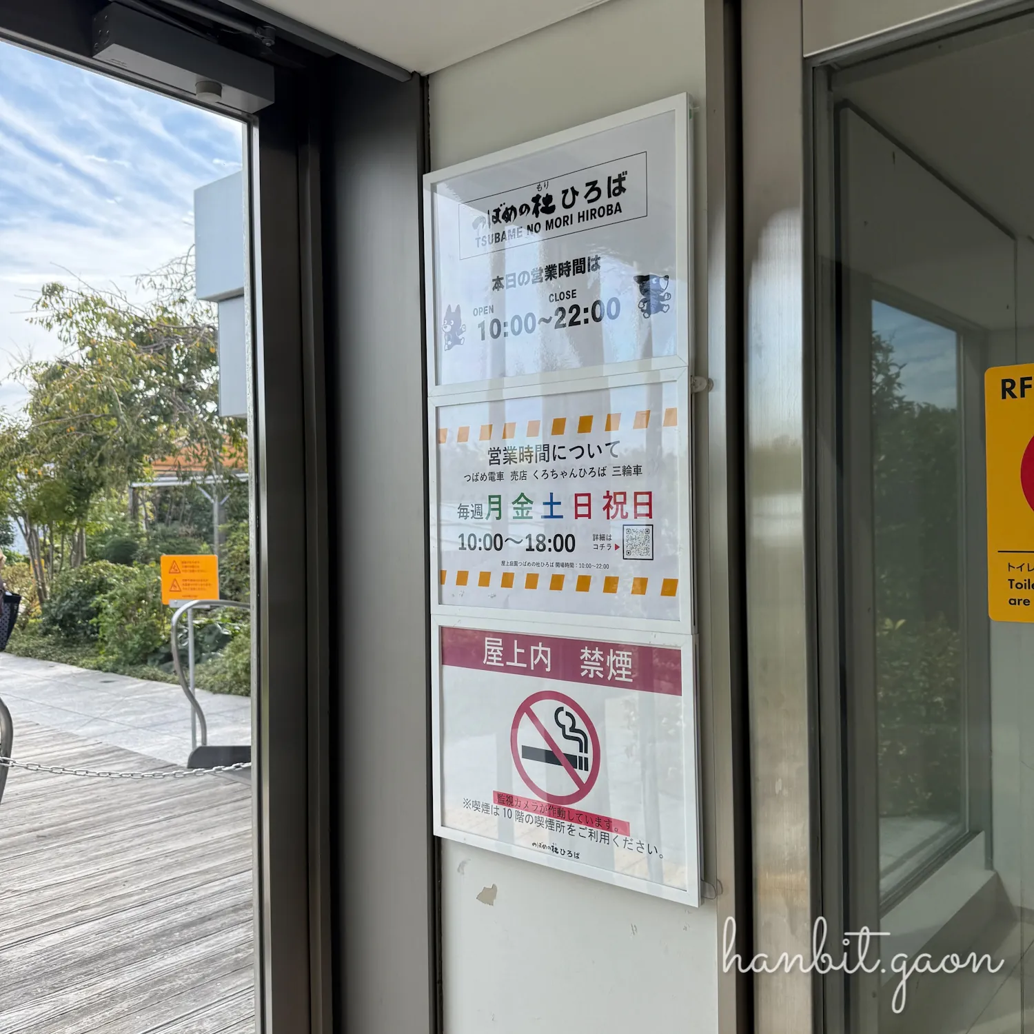 여기 RF층에 옥상정원인 '츠바메노모리히로바'인데, 츠바메는 '제비', 모리는 '숲', 히로바는 '광장'이니까 대충 직역해서 '제비의 숲 광장' 정도로 보면 될 것 같아요.