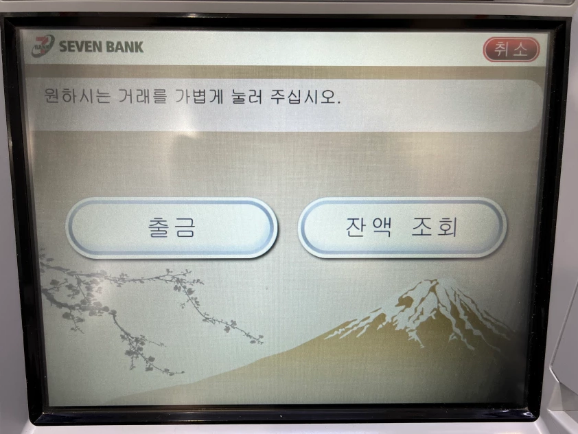 처음으로, 하나카드 트래블로그 체크카드를 이용해 세븐은행 ATM에서 현금을 인출하는 것입니다.