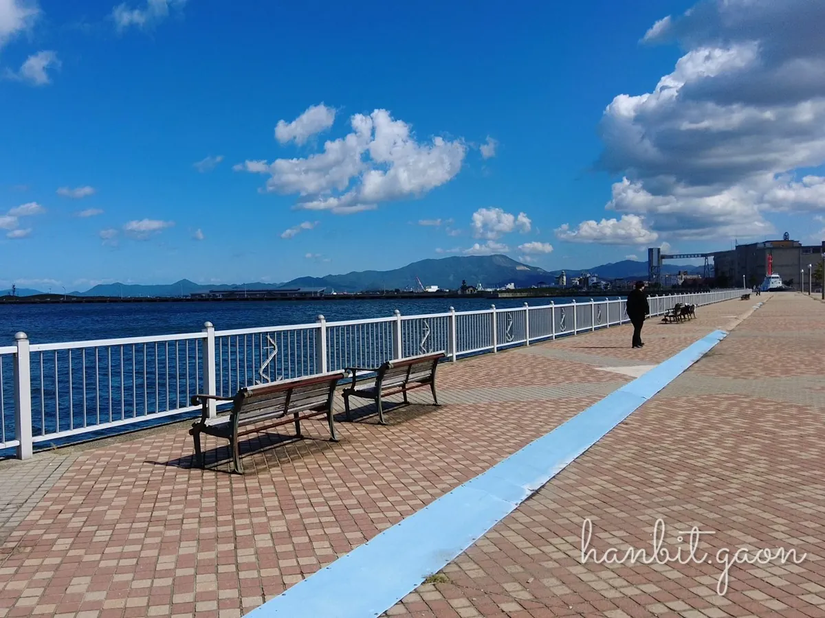 아오모리역 동쪽출구에서 약 3분 정도 걸어가면 나오는 해변!