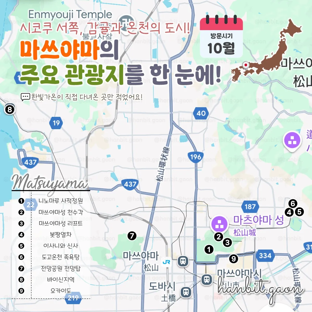 시코쿠에 위치한 귤과 온천의 도시, 마쓰야마의 주요 관광지를 한 눈에!(직접 다녀온 곳만!)