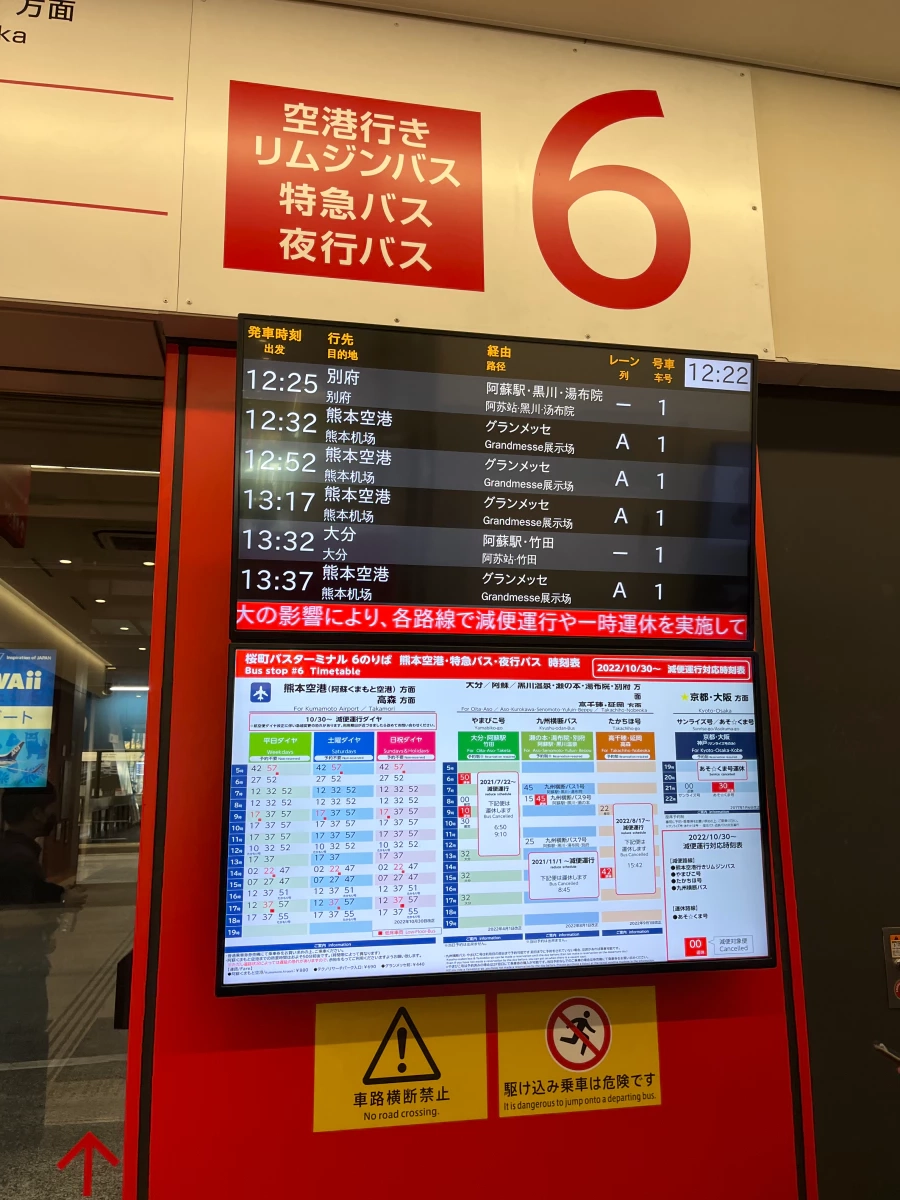 버스 타는 곳 : 구마모토 사쿠라마치 버스터미널 6번 승강장