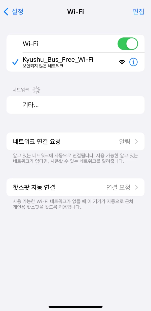 구마모토 사쿠라마치 버스터미널에서 출발한 지 얼마 되지 않은 시점에 연결 후 속도 측정을 해 본 결과입니다. 빠르지 않지만 간단히 급하게 검색이 필요한데 유심이나 포켓 와이파이 등 인터넷 수단이 없다면 쓰는 것도 괜찮을 것 같습니다.