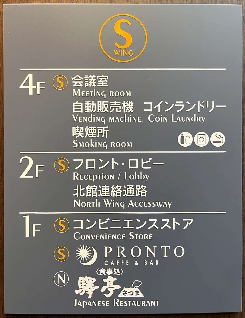 제가 묵은 남관 기준으로, 1층에 카페&바, 레스토랑, 편의점이 있고, 2층에 프론트데스크, 4층에 흡연실과 자판기, 제빙기, 전자레인지, 셀프세탁기&건조기가 있습니다.