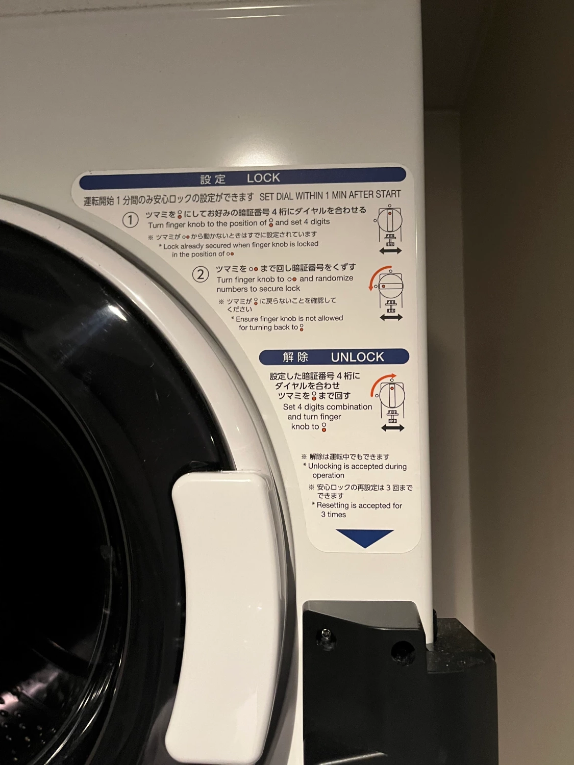 세탁기는 전자식 비밀번호 잠금이 가능하고, 건조기는 다이얼식 비밀번호 잠금이 가능해 세탁기 및 건조기를 눌러두고 객실에 있다가 시간 맞춰서 와도 안심이 된다는 점입니다.