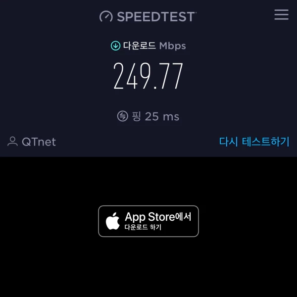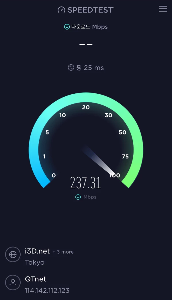 객실 와이파이를 오후 7시 정도에 속도 측정한 사진입니다.