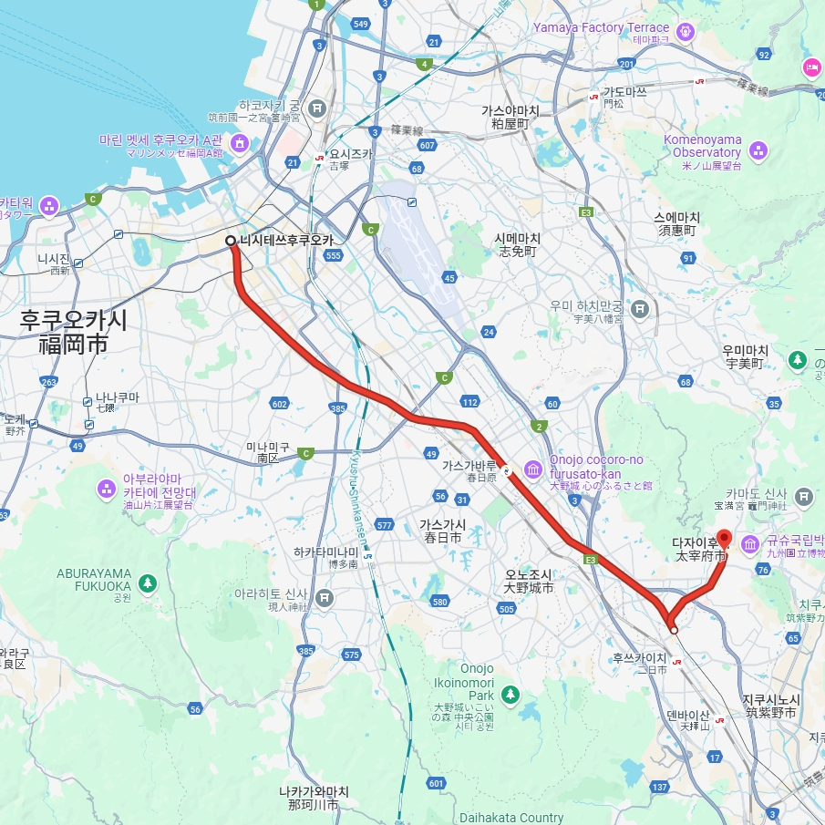 하카타에서 다자이후에 가려면 라이너버스인 '타비토'를 타는게 편하지만, 텐진에서 가려면 니시테츠 전철을 이용하는 편이 좋아요.