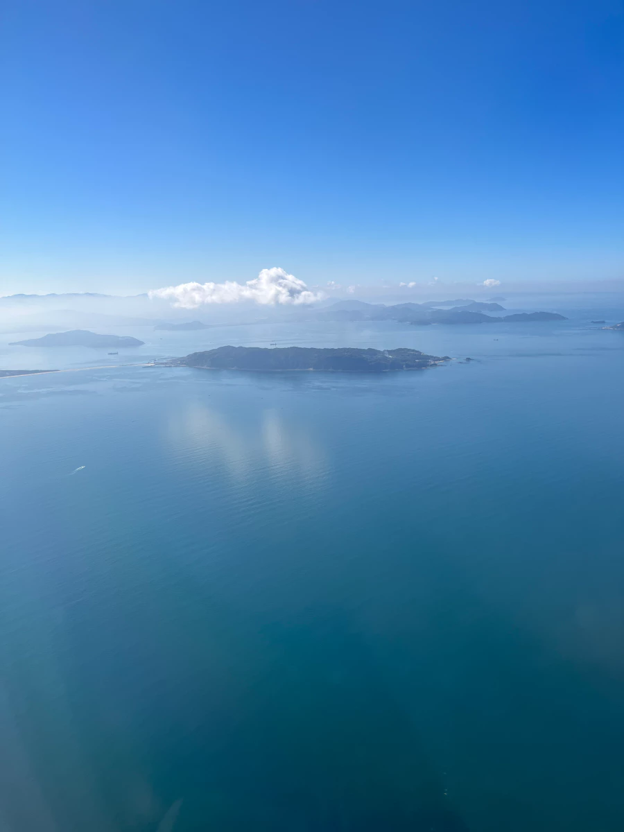 후쿠오카에 거의 다 왔다고 느껴질 시간에 창 밖을 보니 어째 익숙한 모양의 섬이 보여요.