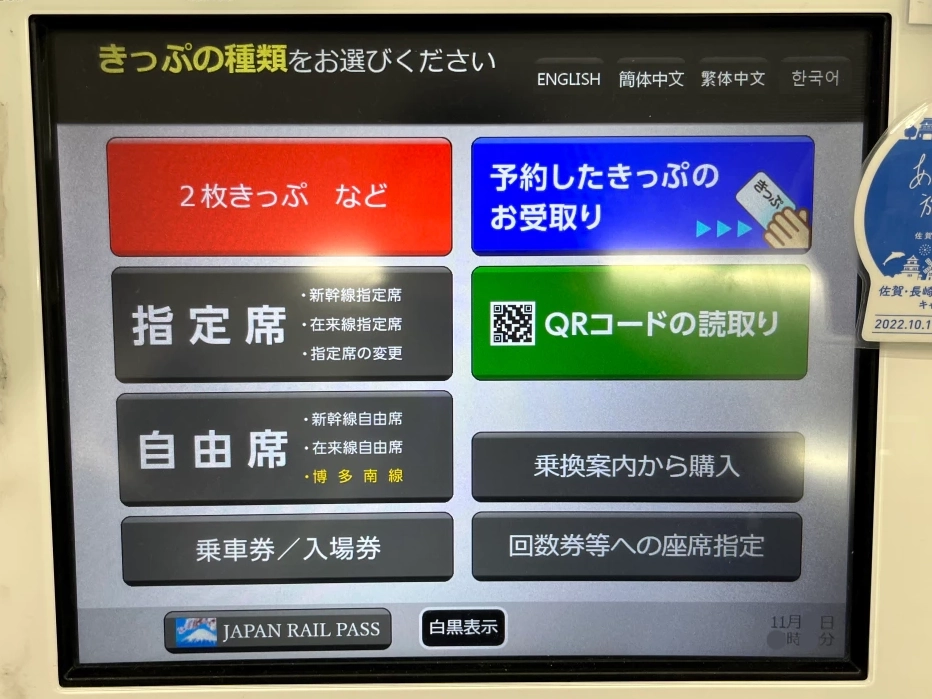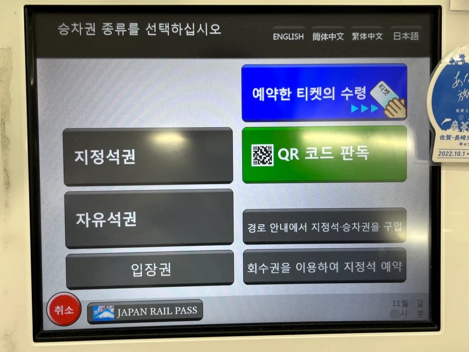 사람이 많아서 그런지 창구에서는 당일 이용하는 열차에 한해 지정석 예약이 가능하다고 해서 패스를 교환받아 자동 발매기에서 나머지 일정에 필요한 지정석을 예약 발권했어요.