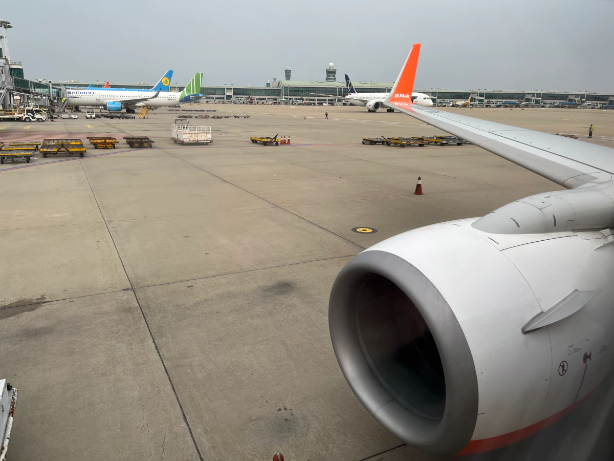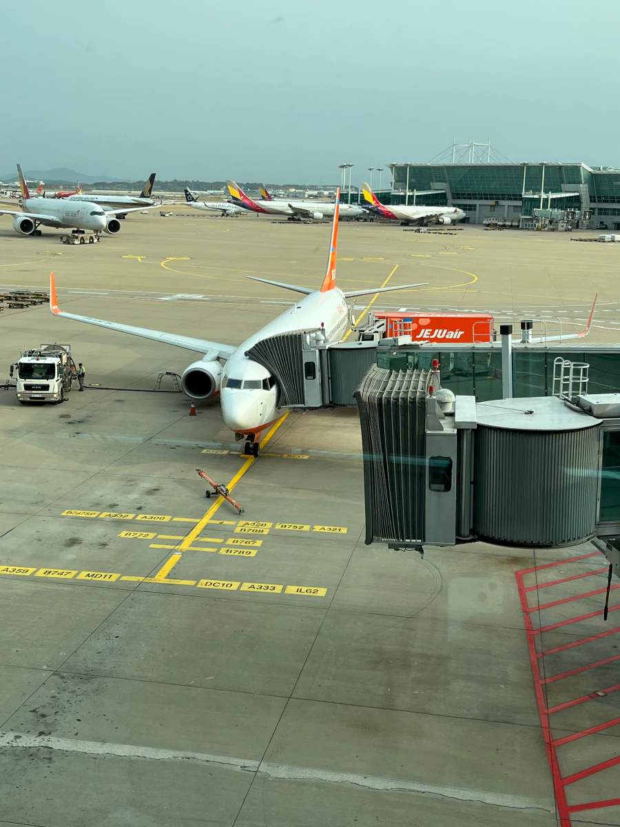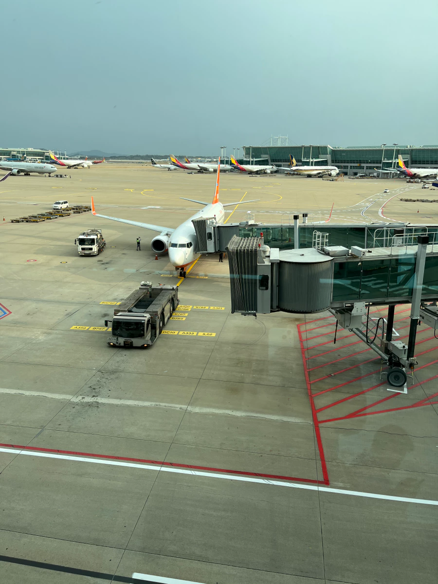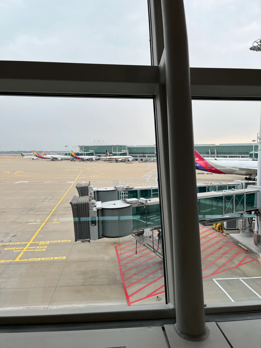 창 밖을 보며 비행기 날개도, 공항에 있는 많은 비행기를 보면서 여행을 간다는 것을 다시 한번 실감해요.