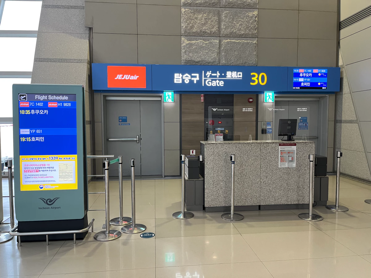이번에 탈 비행기는 제주항공, 30번 게이트!
