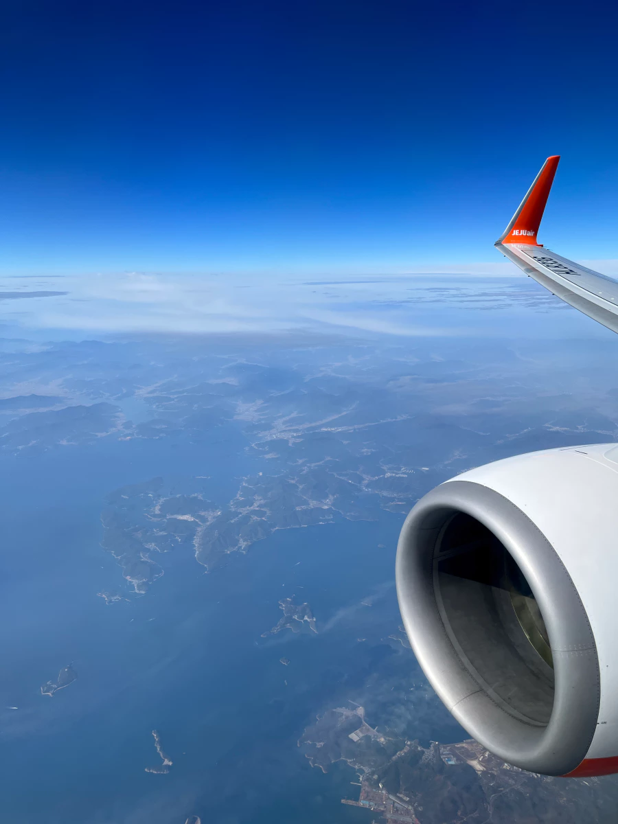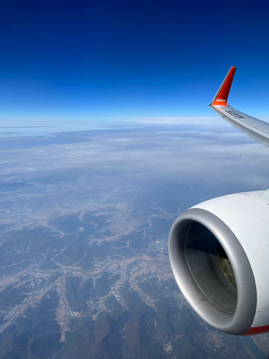 비행기를 탈 때는 가능하면 창가 좌석으로 하고, 비행기를 타면 항상 하는 일 중 하나가 창가 사진을 찍는 것이에요.
