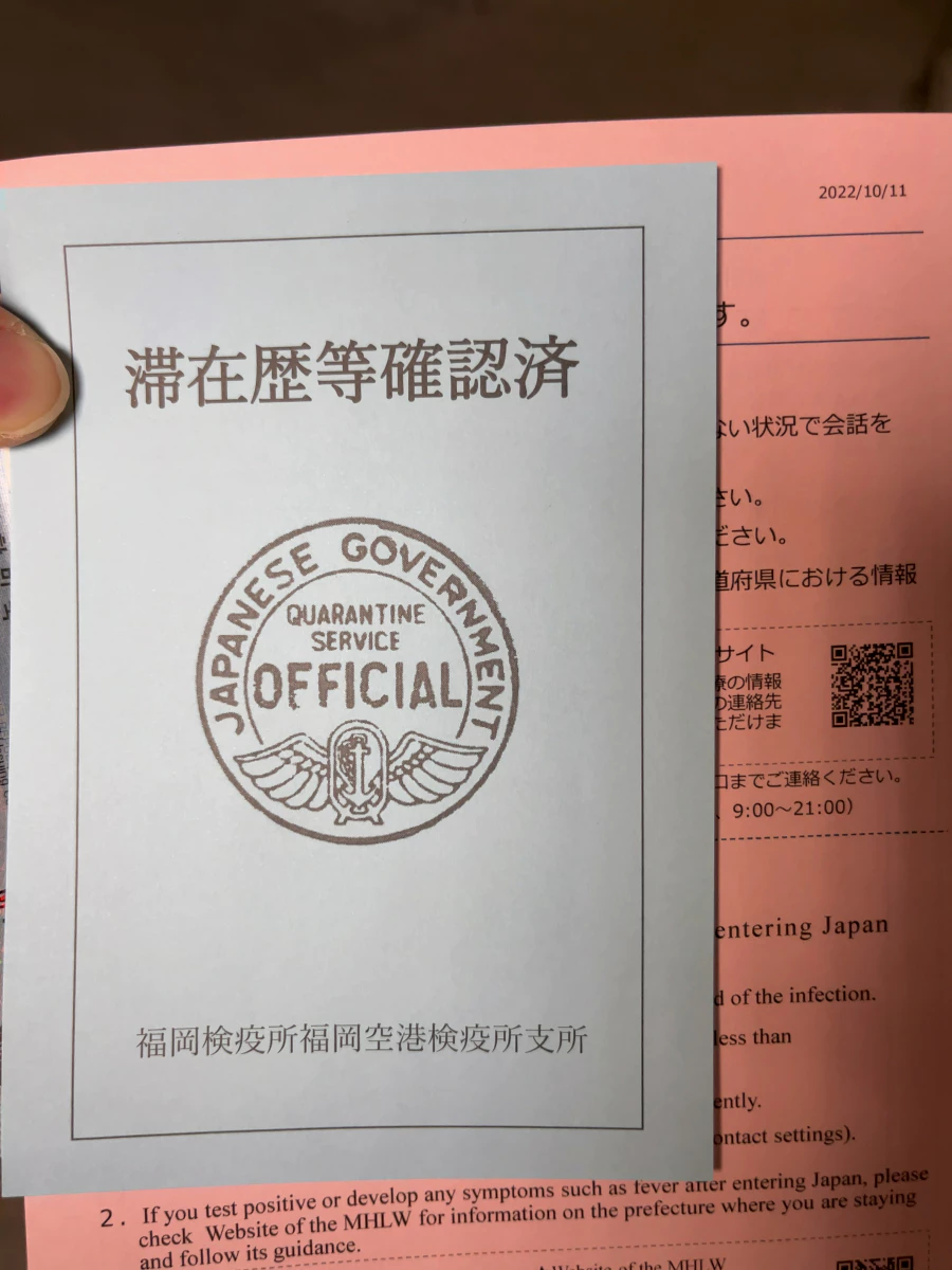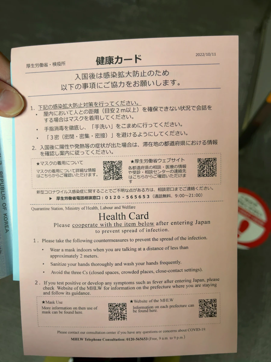 여권과 QR코드를 제시하고 위와 같은 종이 2장을 받았고 그 다음에 입국심사대로 가는 방식이네요.