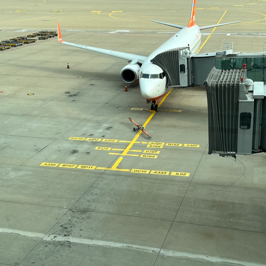 제가 탈 비행기는 B737 기종이라 해당 선에 앞바퀴가 맞춰서 서 있어요.