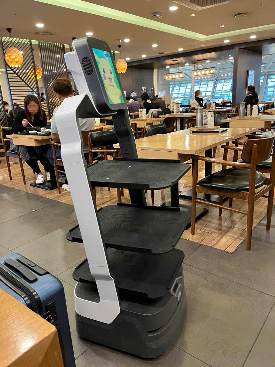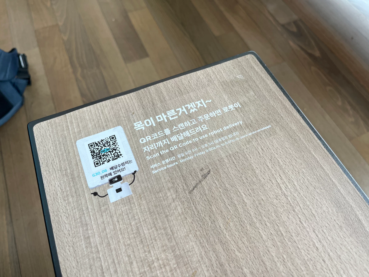 아침식사를 하러 4층에 올라가 김치찌개를 주문했는데 서빙로봇이 음식을 전달해주네요.