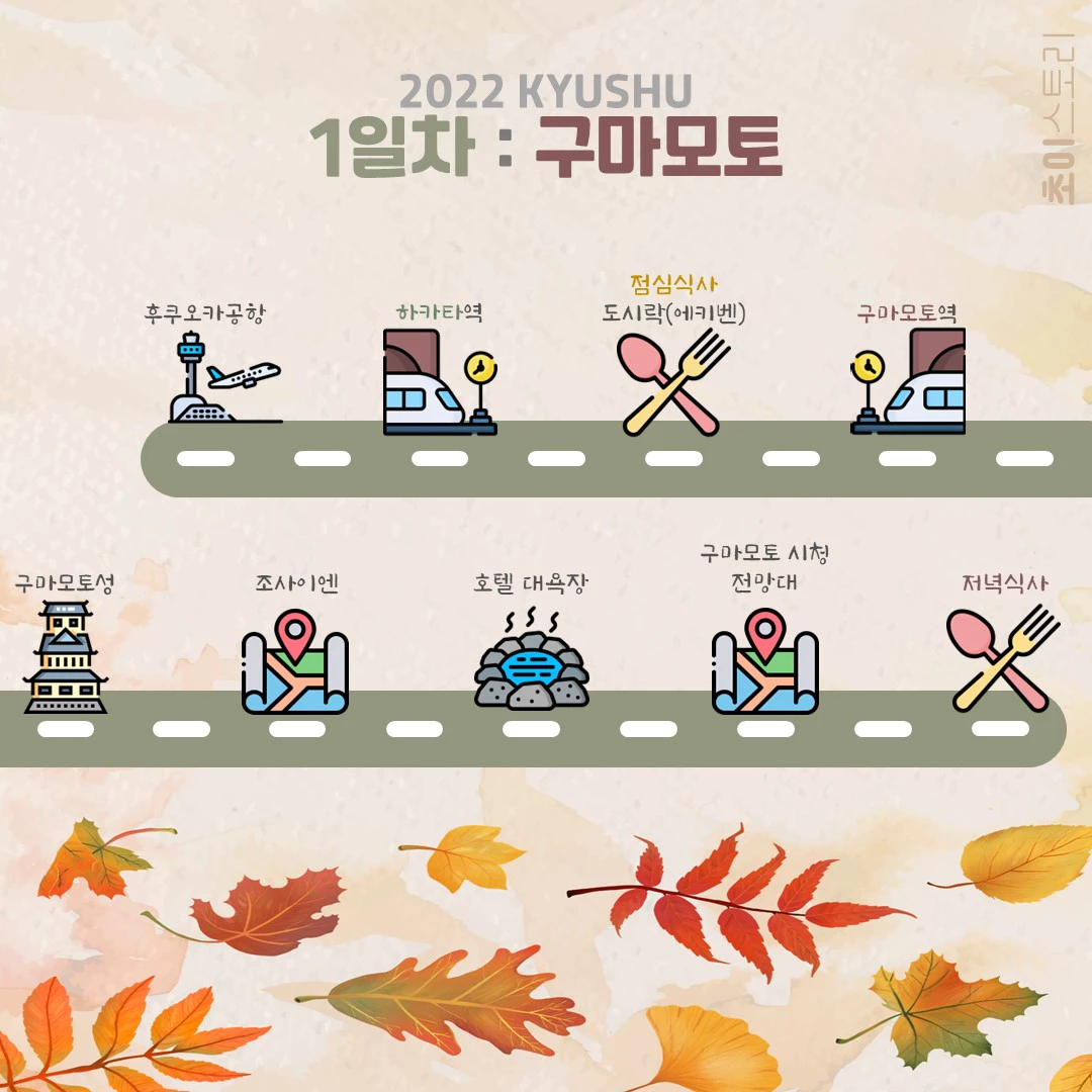 첫 날의 후쿠오카는 후쿠오카 공항에 내려 하카타역으로 가서 신칸센을 타기까지만 체류하는 일정이라 말 그대로 지나가는 도시에 가깝고, 3일 차의 구마모토도 마찬가지에요.