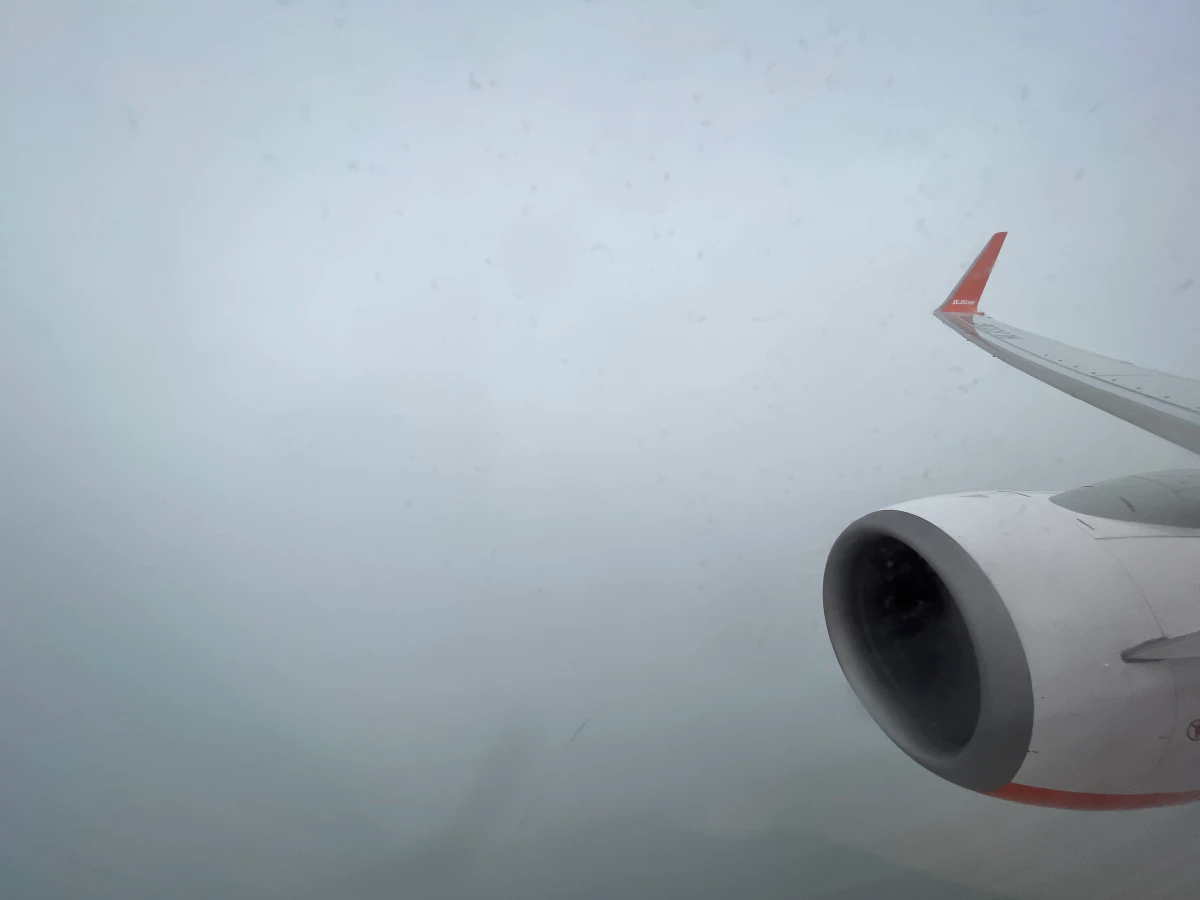 인천공항 주변 기상상태가 조금 안좋았는지 먹구름 속을 날아가네요.