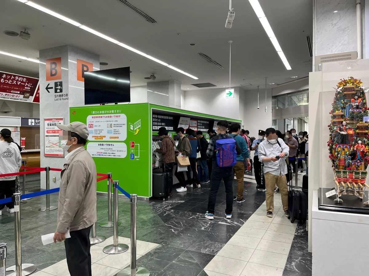 창구 오른쪽에 보이는 것이 자동 발매기인데 레일패스만 받으면 저기서도 지정석 발권이 가능해요.