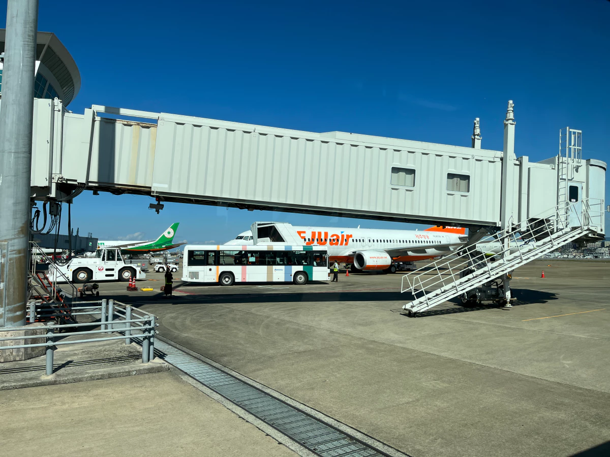 무슨 일인지 게이트(보딩브릿지)가 아닌 버스로 이동하네요.