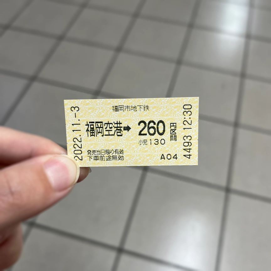 하카타역으로 가는 티켓을 구입! 260엔이에요.