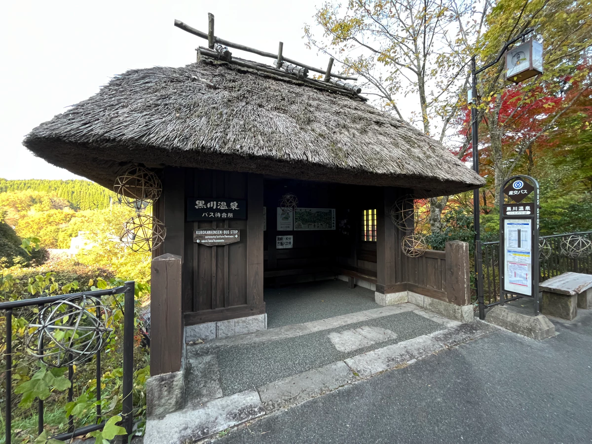 여기가 쿠로카와 온천에서 구마모토나 후쿠오카로 가는 버스를 타는 정류장이에요.