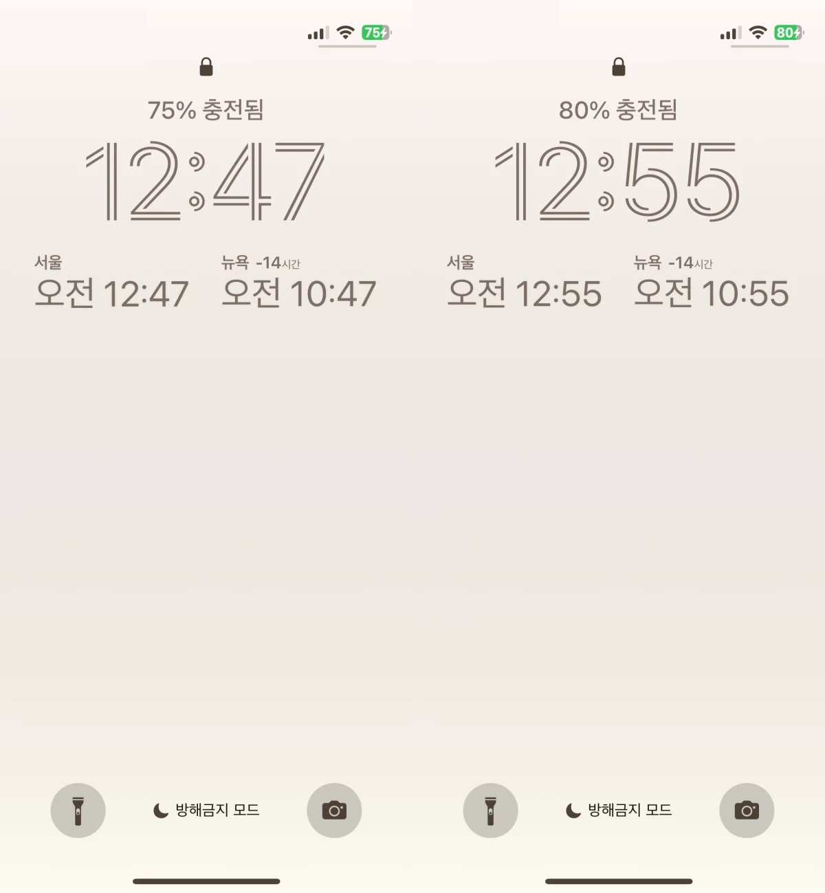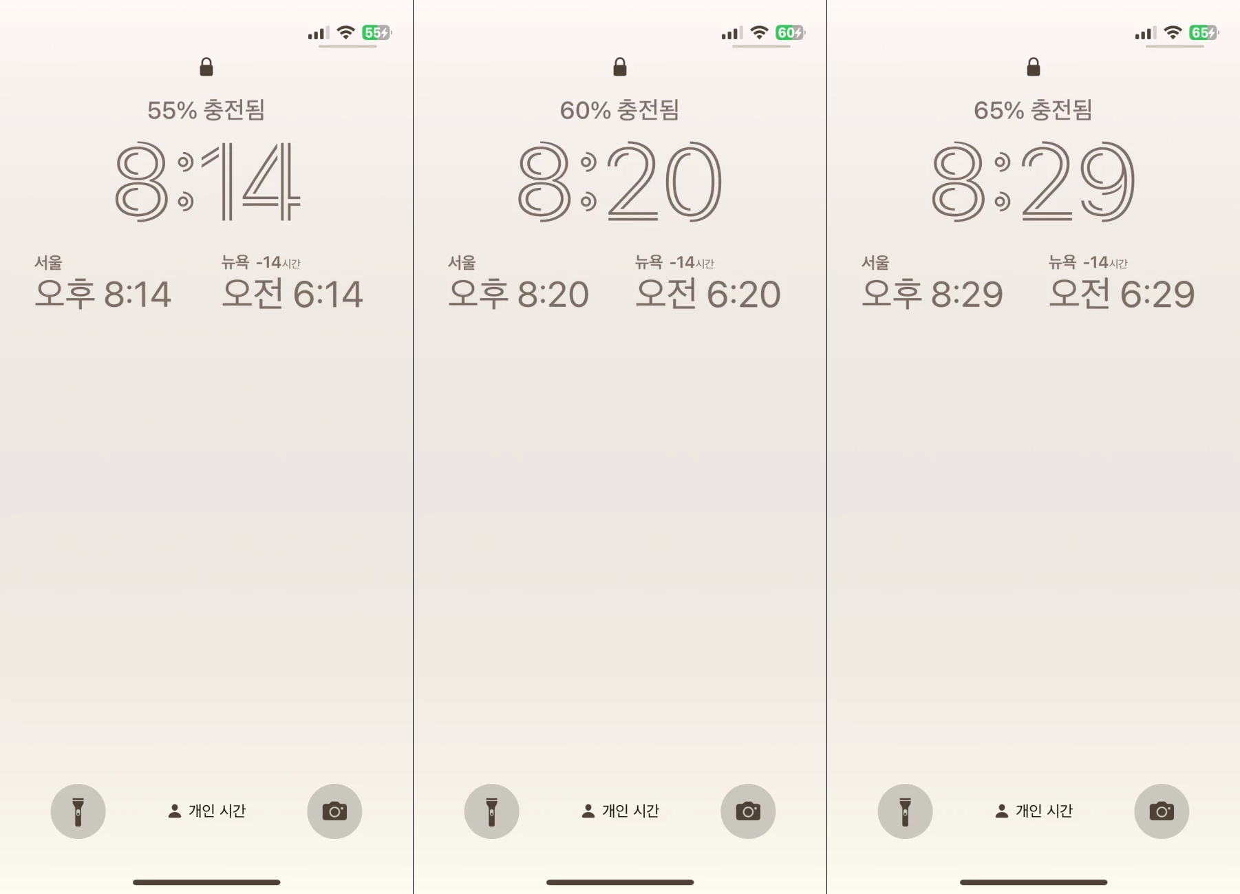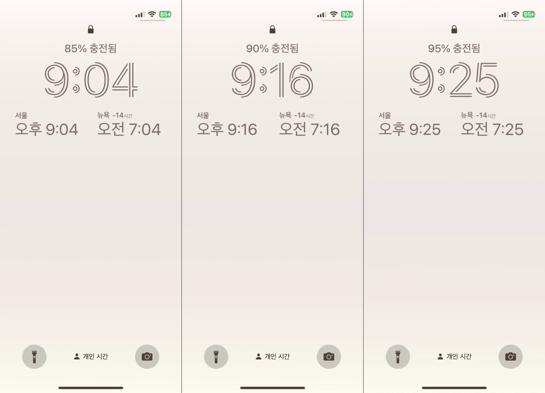 80%부터는 아이폰에서 배터리 수명을 위해 최적화된 배터리 충전 기능으로 충전 속도를 조절하기 때문에 10% 충전당 시간이 많이 필요한 것으로 보입니다.