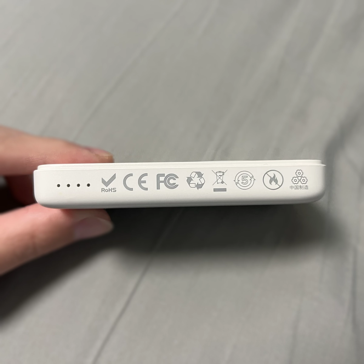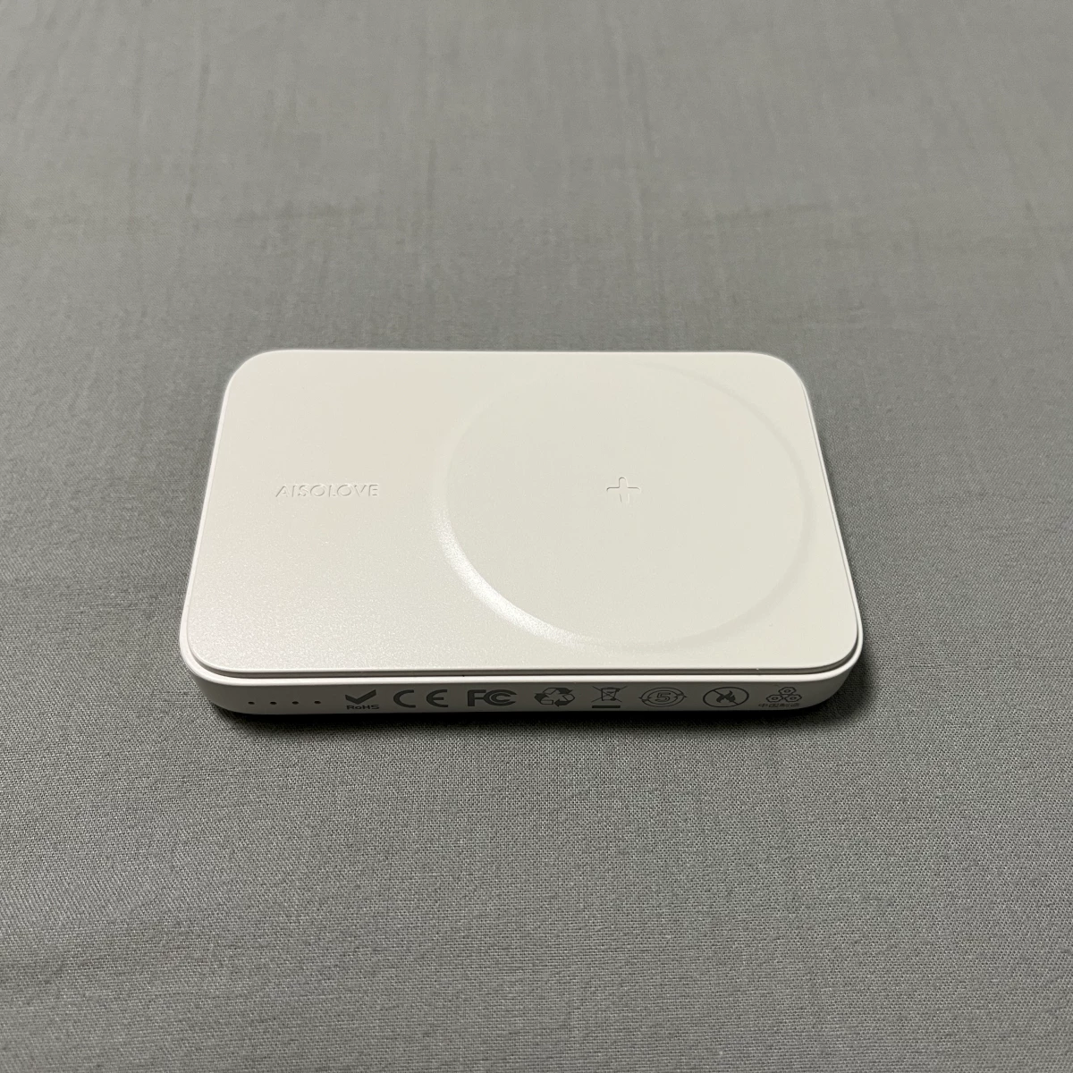 보조배터리 뒷면입니다. 위에서 적었듯 맥세이프 충전면이 실리콘 링이 아닌 플라스틱 마감입니다.