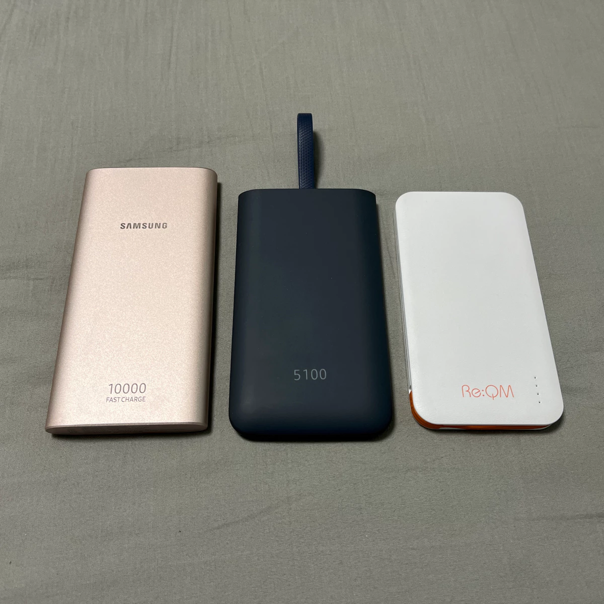 10,000mAh 급 보조배터리 3개 중 2개는 제조년월이 5년이 지나 사용하기에 효율이 좋지 않아서 보관만 하고 있고 사진 속 10,000mAh 보조배터리는 가지고는 있지만 무게가 무거워 쓸 일이 잘 없습니다.