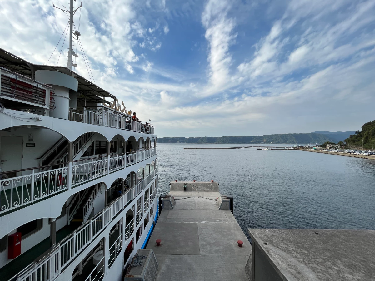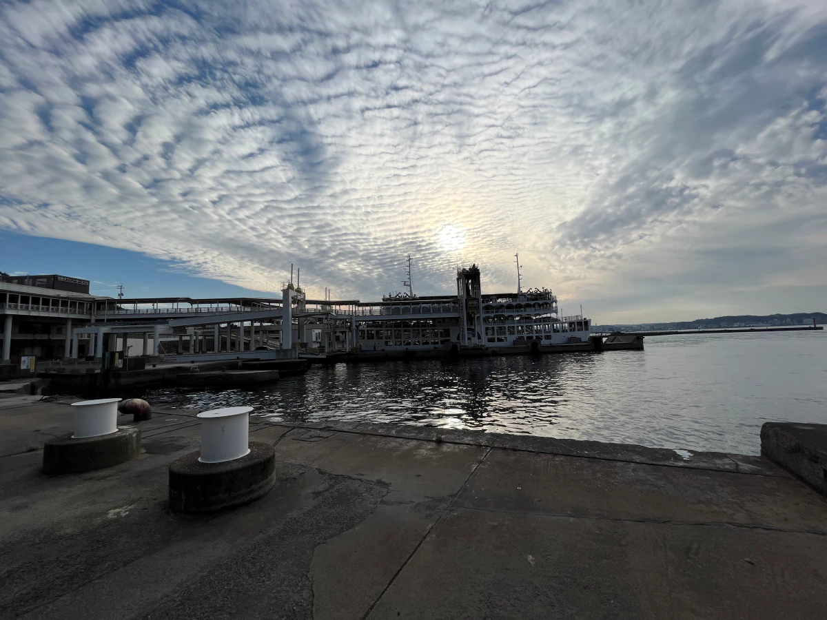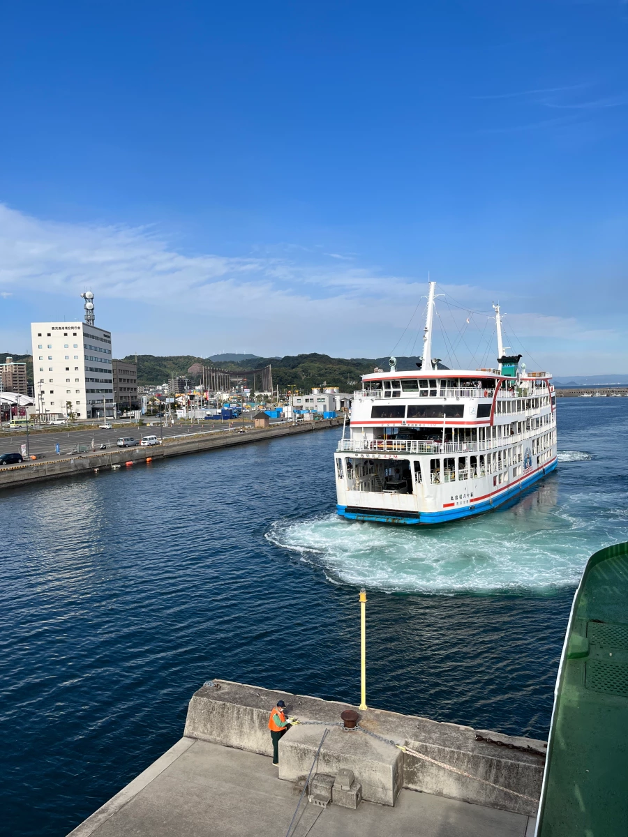배가 반대편으로 접안하고, 사쿠라지마에서 들어온 배가 접안을 마칠 쯤에 제가 탄 페리가 출발해요.