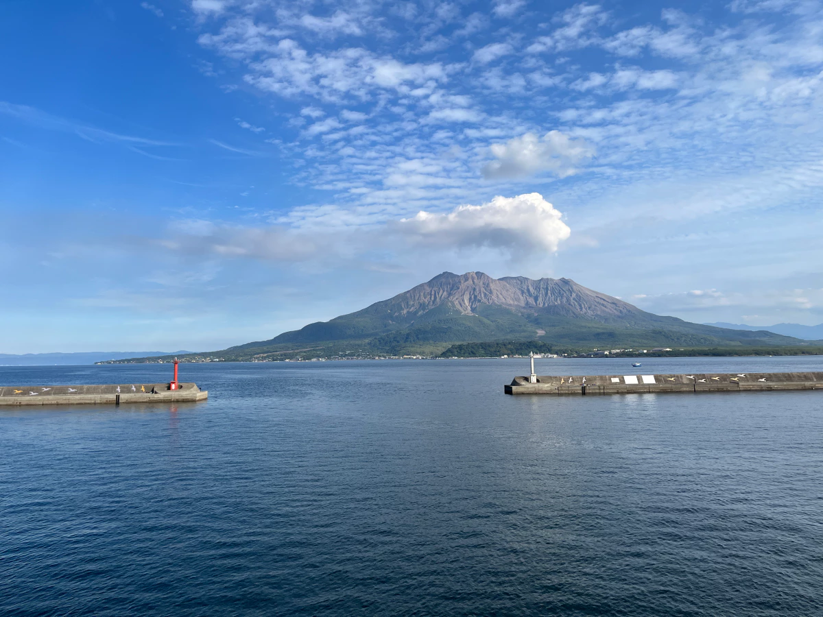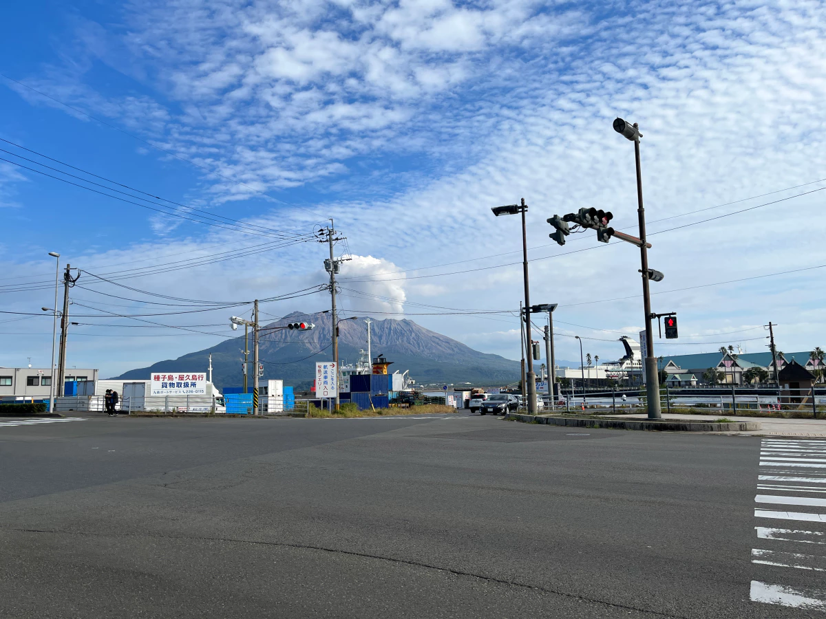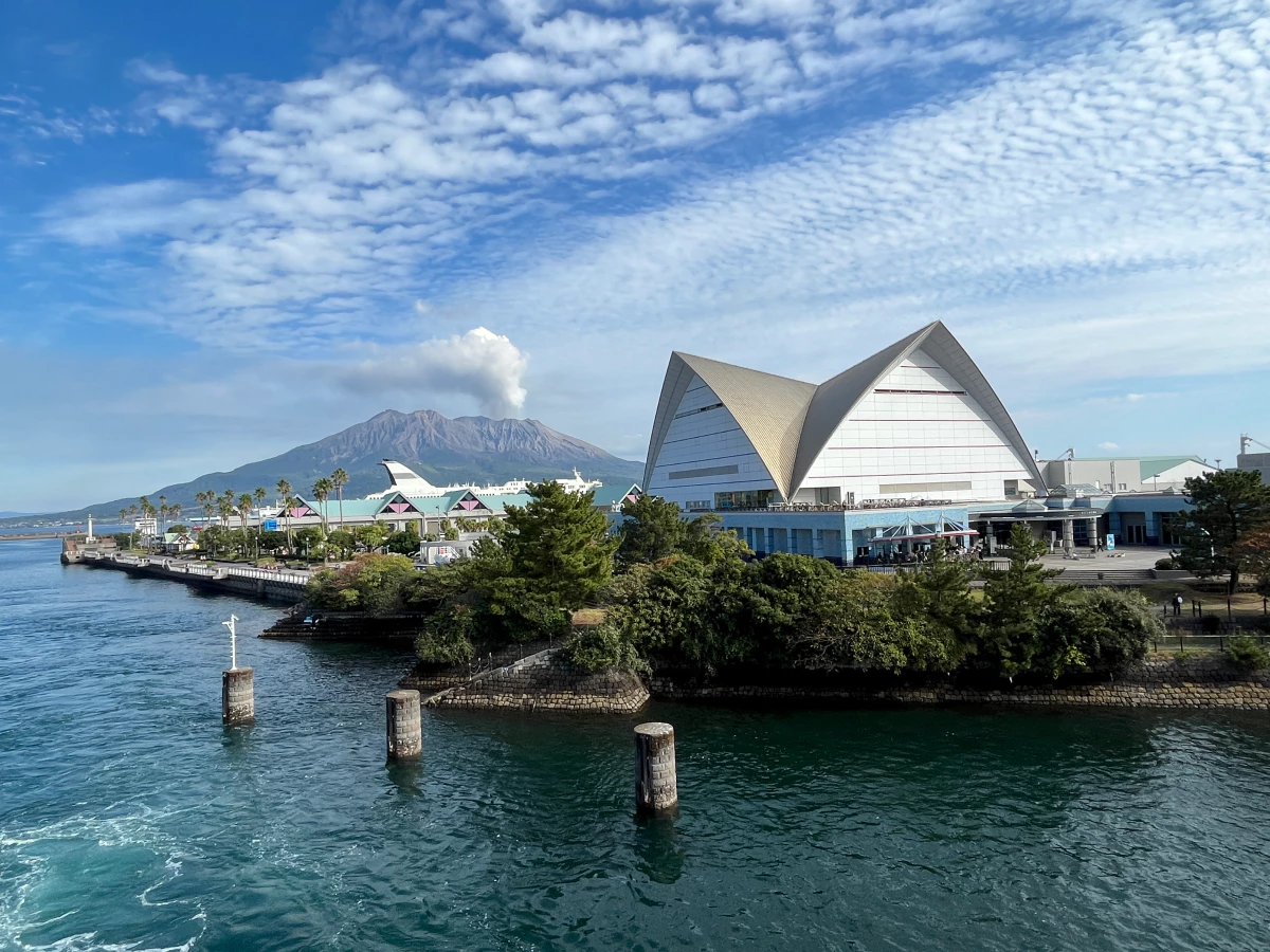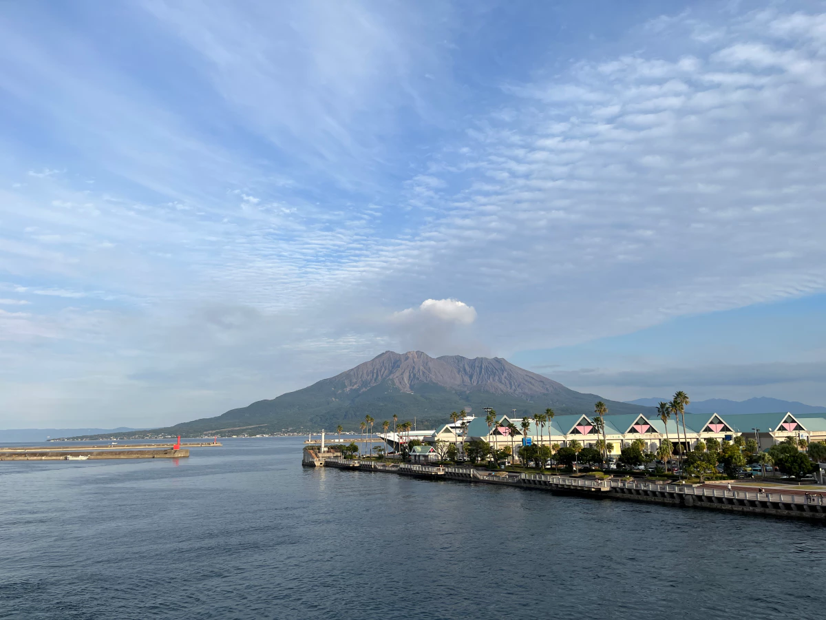 가고시마항에서 사쿠라지마까지는 약 15분 정도 걸려요.