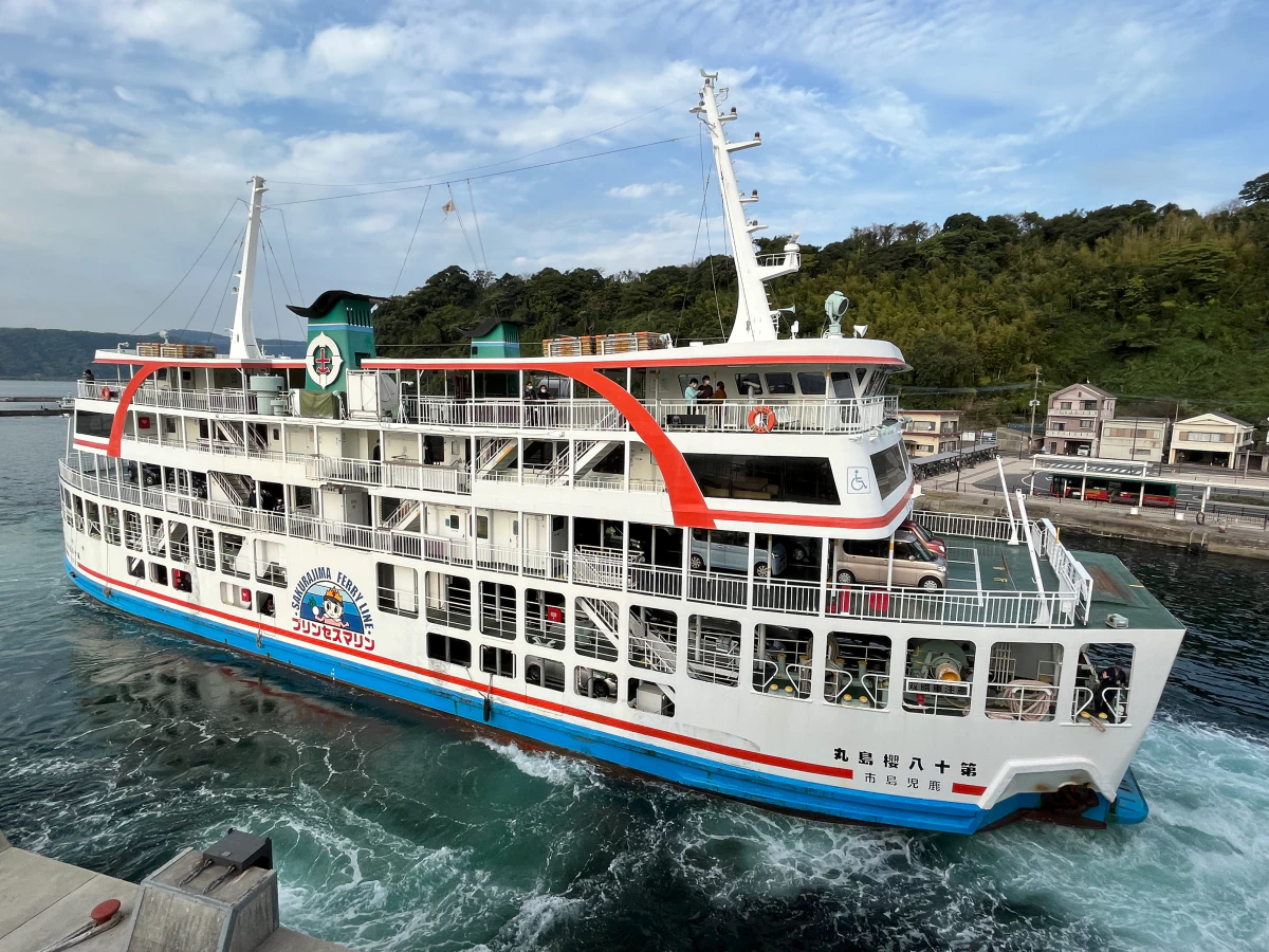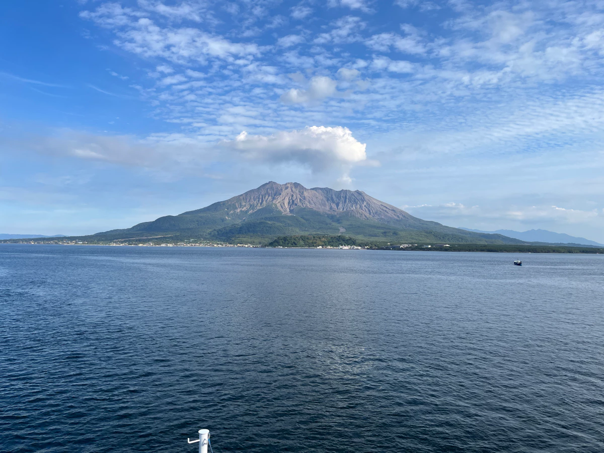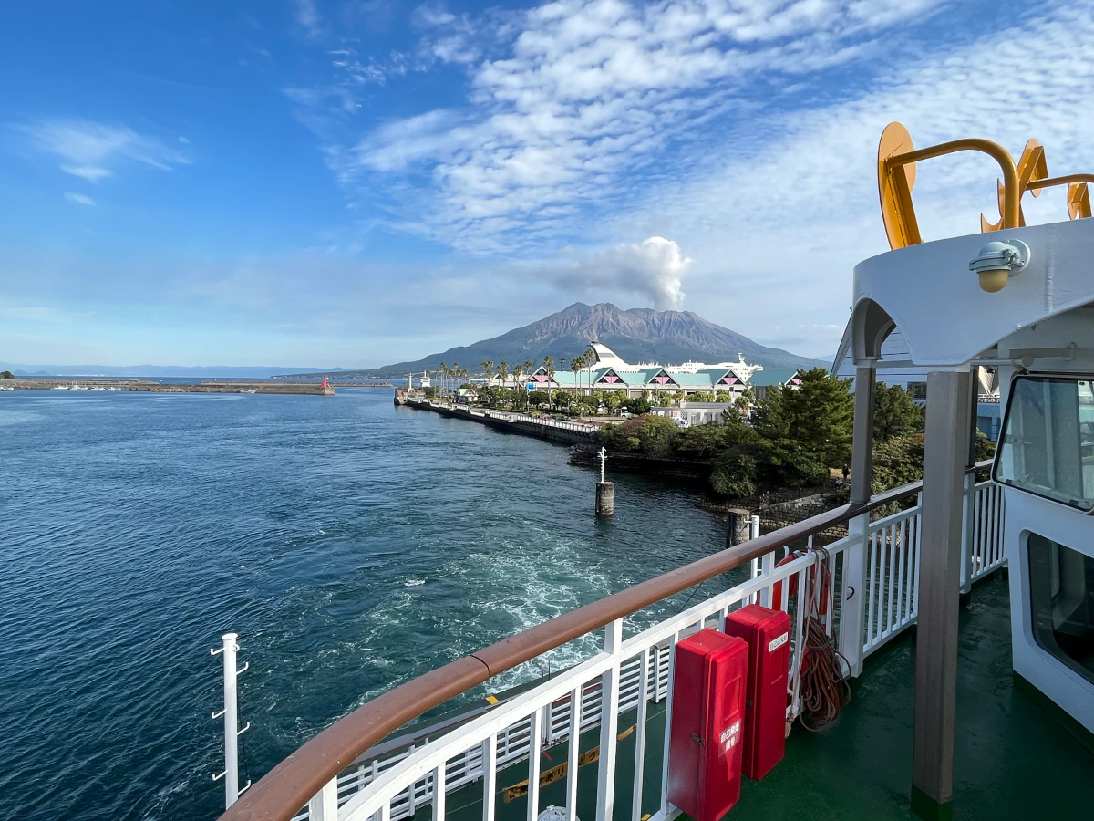 점점 가까워지는 사쿠라지마를 보며 15분간의 항해를 즐겨요.