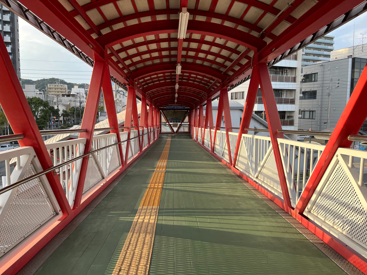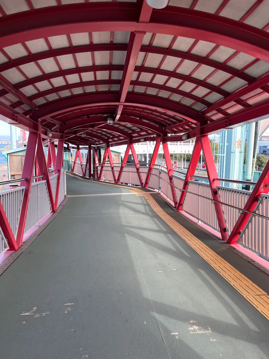 사쿠라지마로 가는 페리를 타기 위해 가고시마항으로 가는 중인데, 육교로 올라가요.