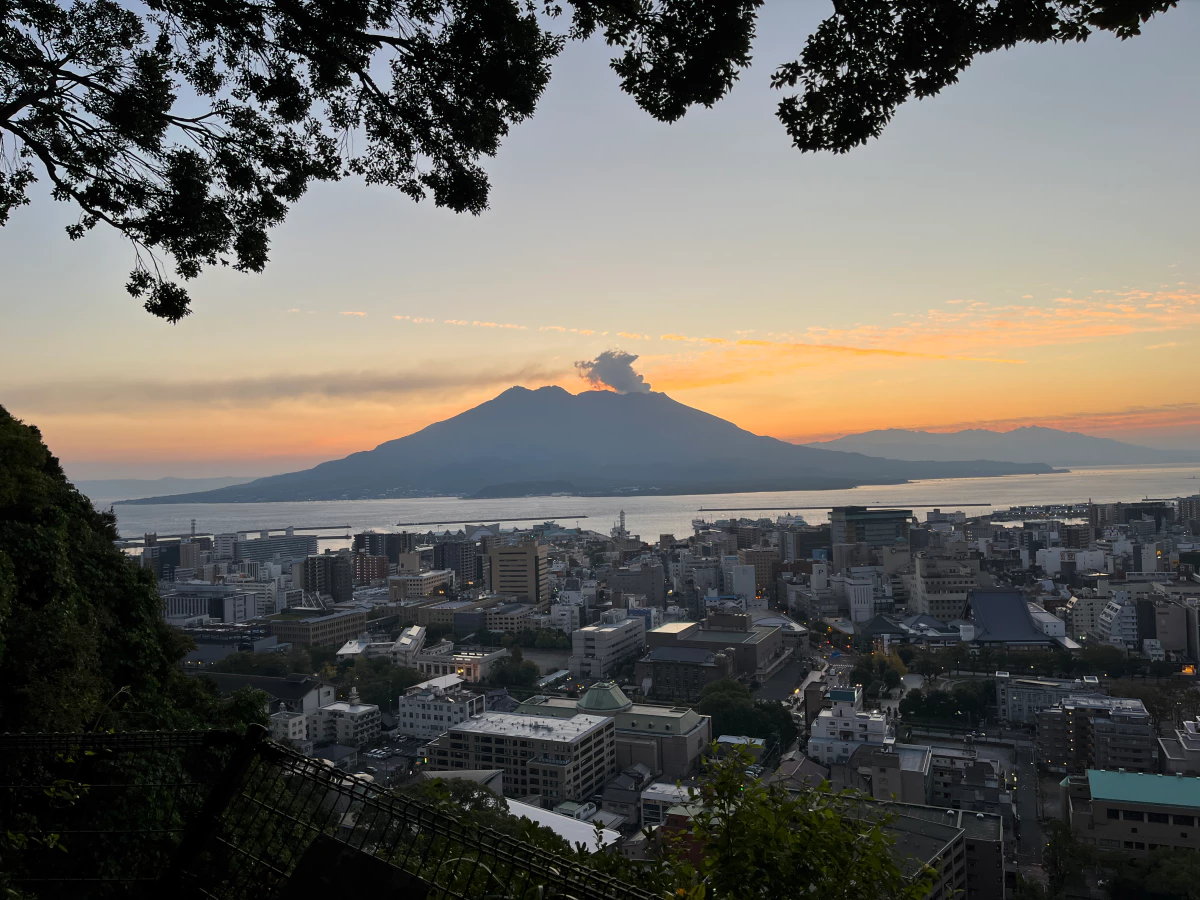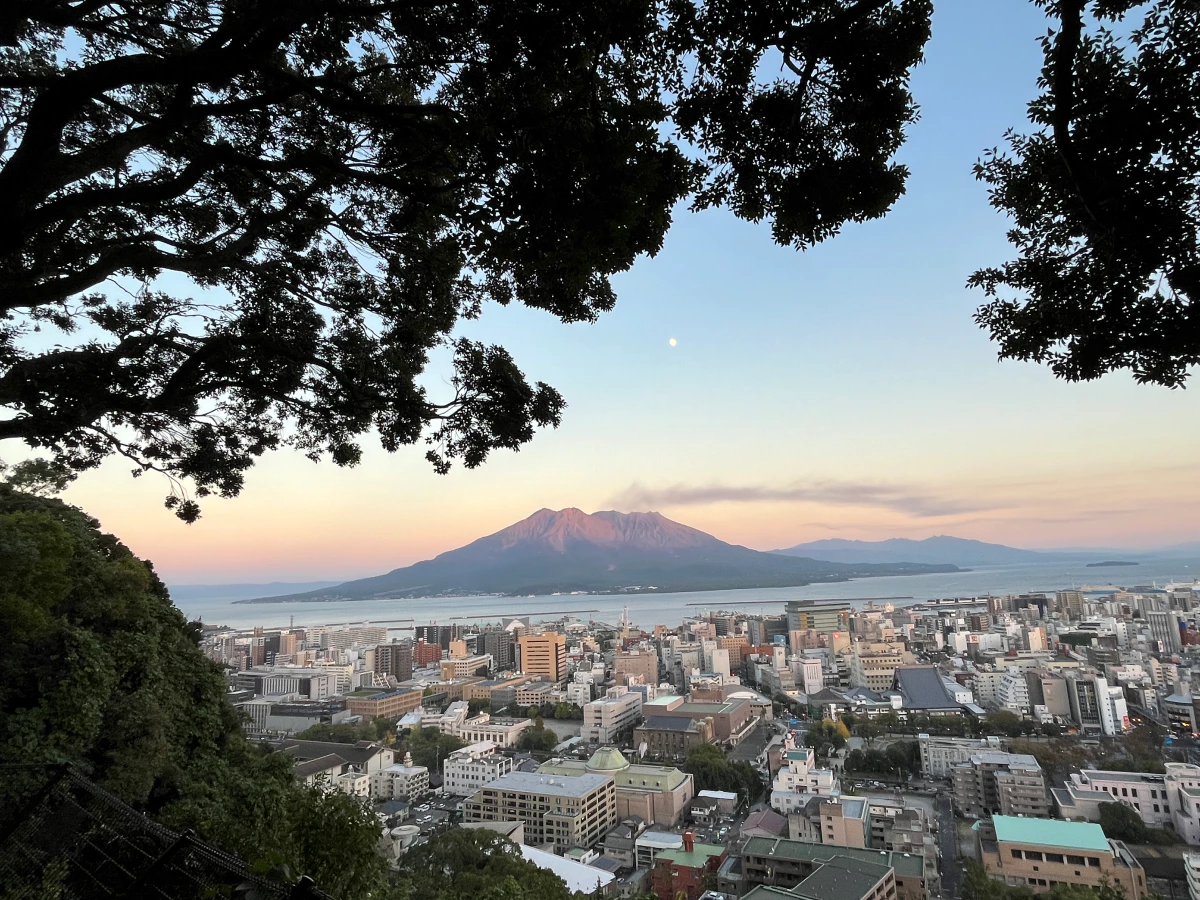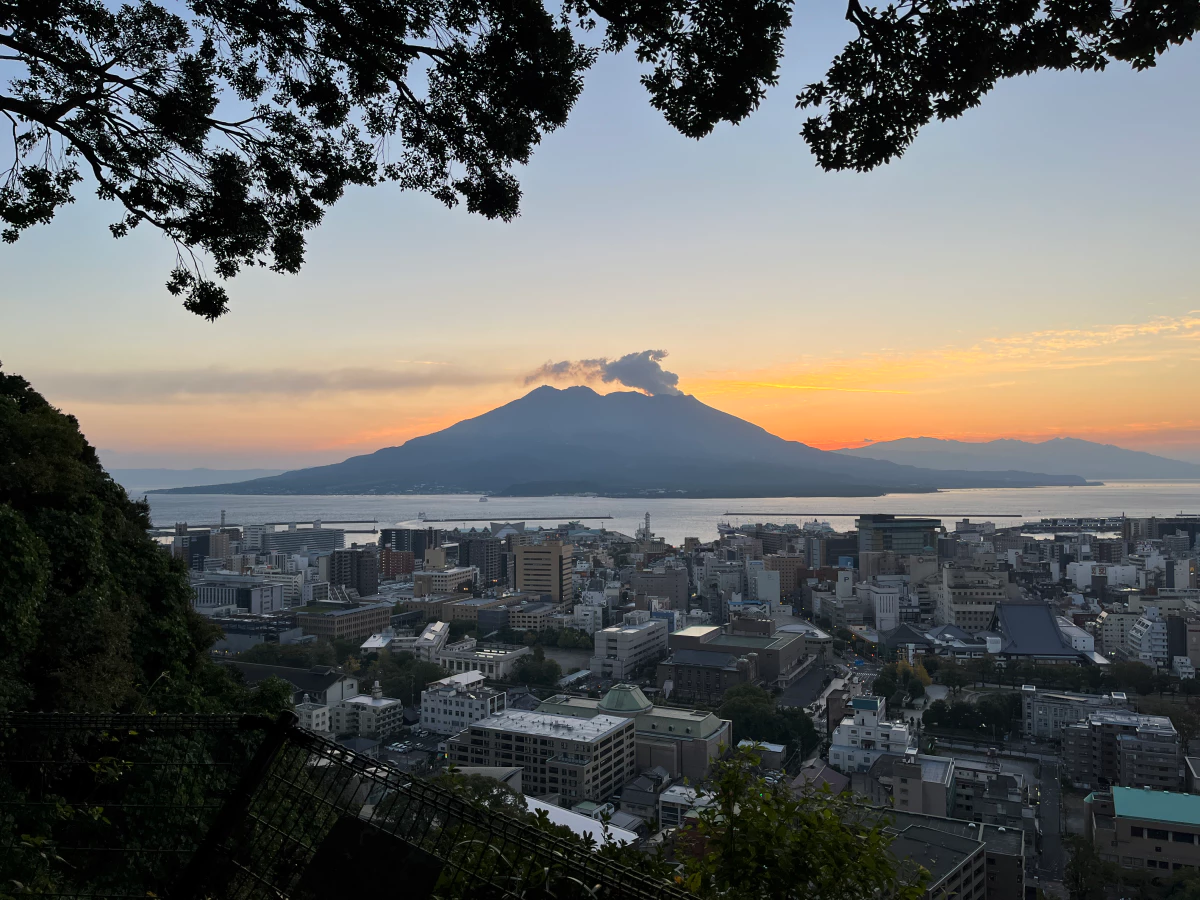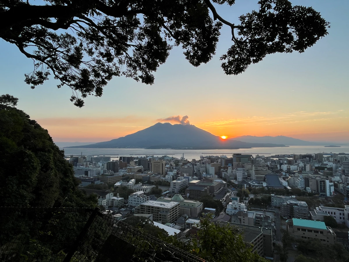 시로야마 공원 전망대에서 보는 가고시마의 일출과 노을 그리고 야경