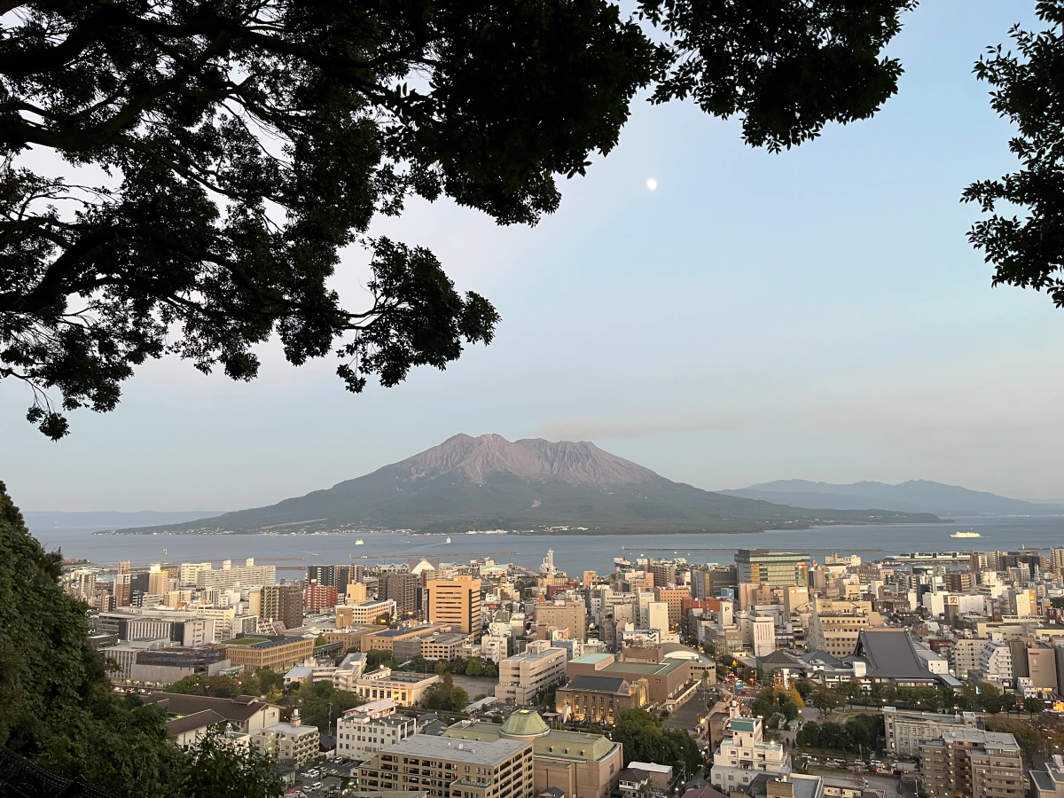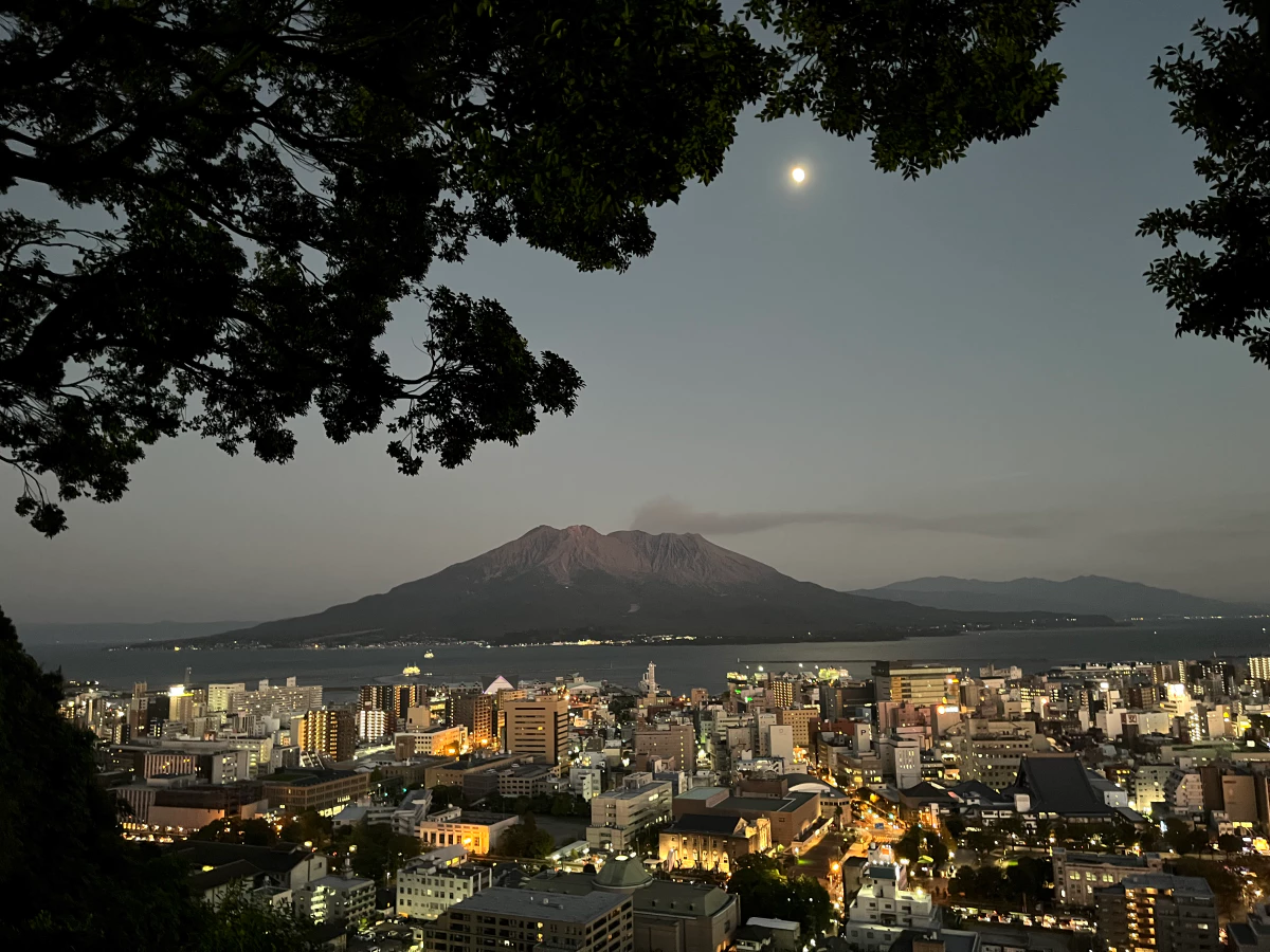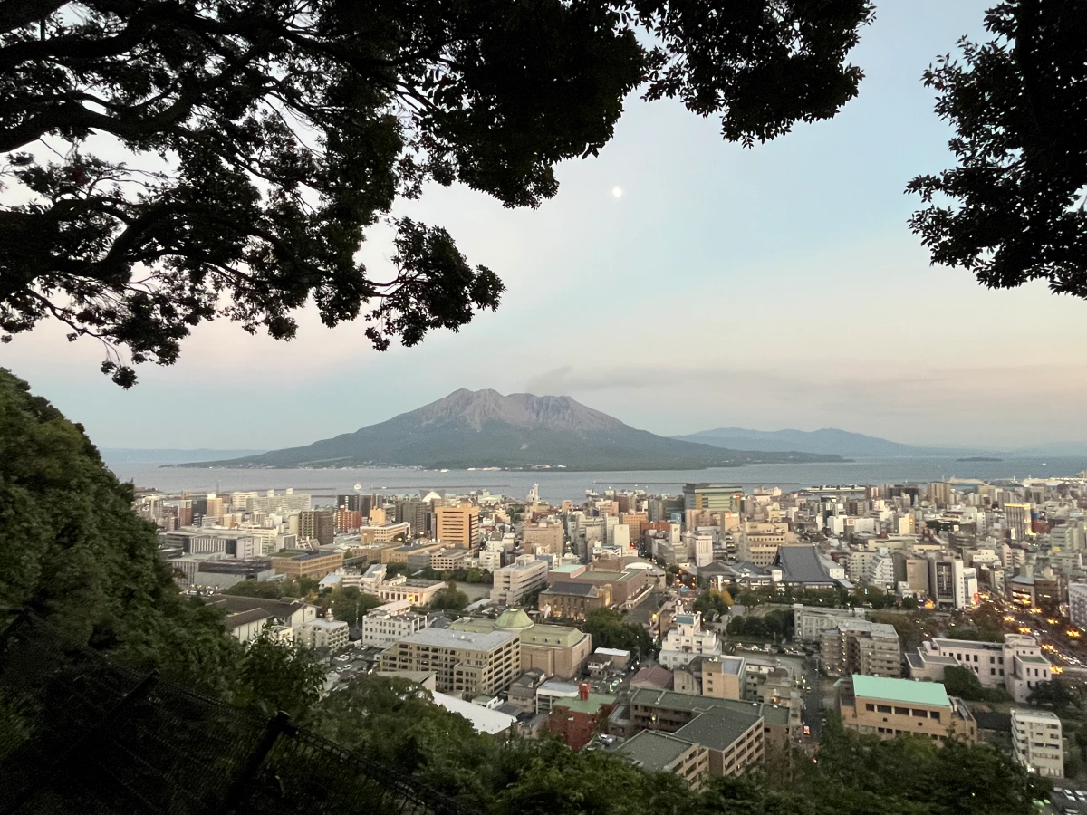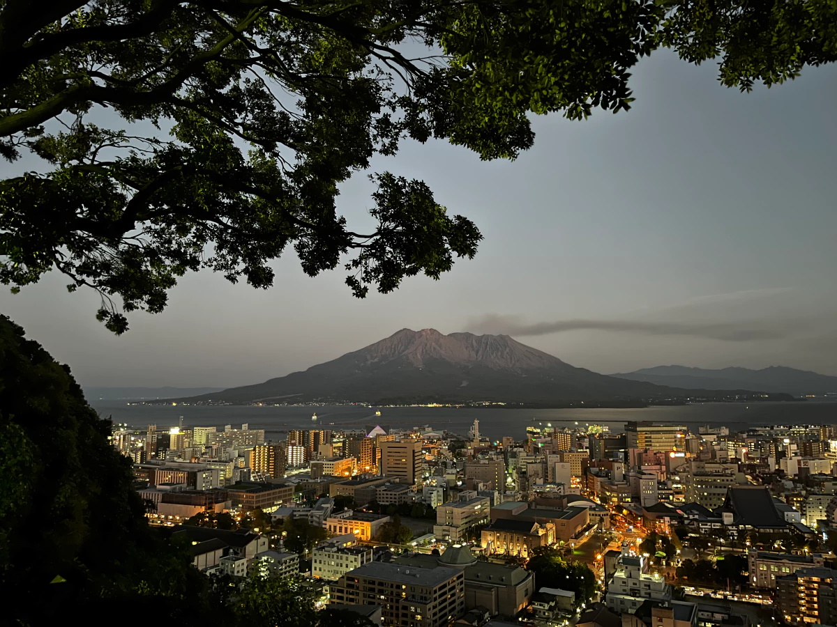시로야마 공원 전망대에서 보는 가고시마의 일출과 노을 그리고 야경
