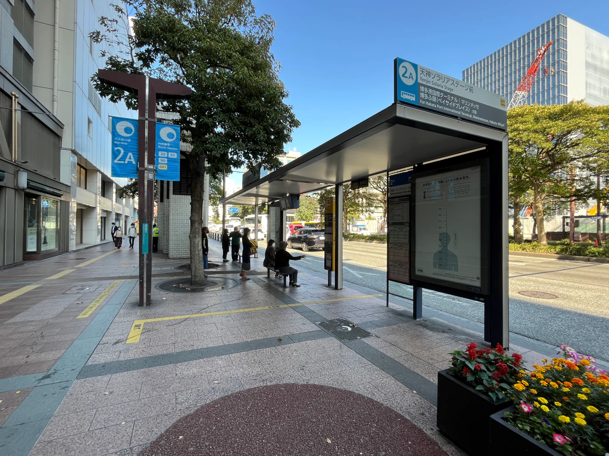 니시테츠 후쿠오카역과 솔라리아 스테이지 밖으로 나오면 2A 정류장이 있어요.