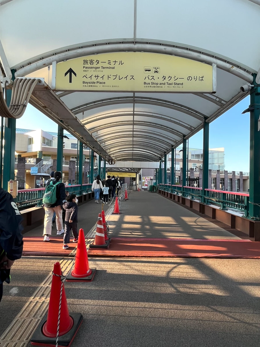 매표창구에서 뒤쪽으로 가서 승선하는 곳으로 가요.