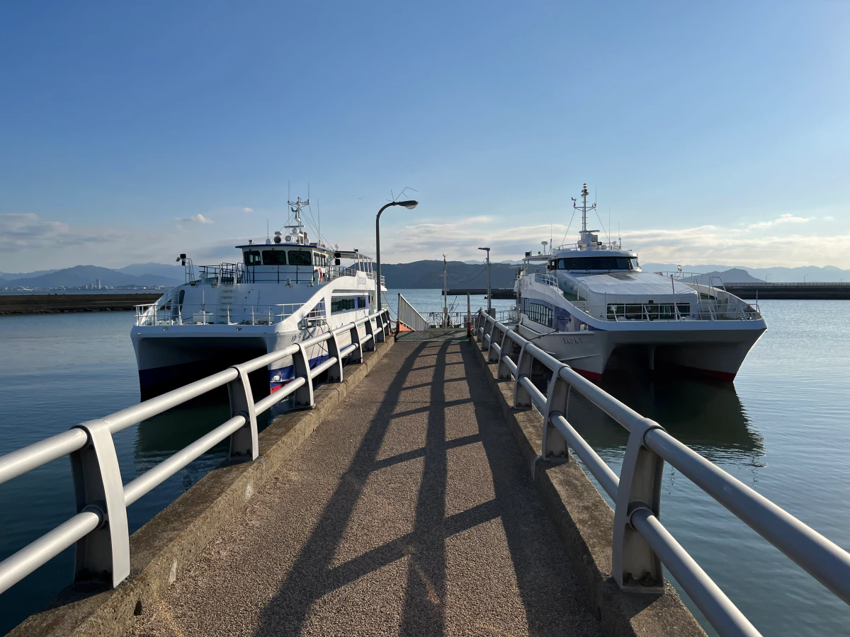 시카노시마로 가는 페리는 하카타부두에서 출발해 니시토자키까지 15분, 니시토자키에서 시카노시마까지 15분으로 총 30분 동안 탈 예정이에요.