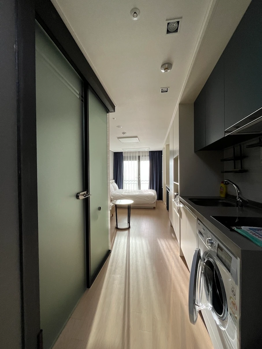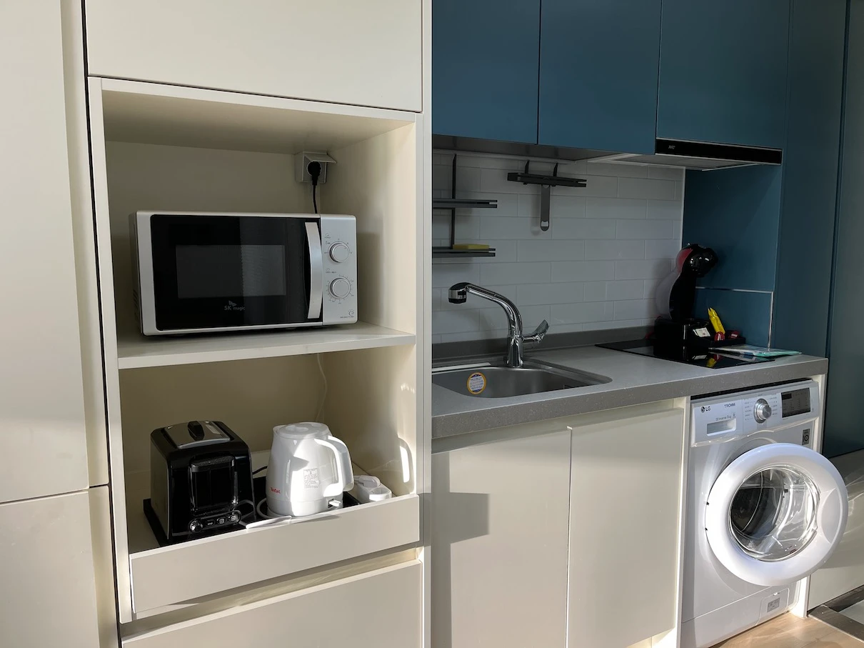 - 객실 내 전자레인지, 토스터기, 세탁기 비치