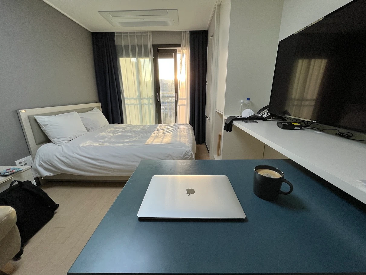 이 호텔의 경우 전망이 일반뷰(시티뷰)와 오션뷰로 나뉘어져 있는데 호텔이 해수욕장 바로 앞이라 바다는 걸어나가서 보면 될 것 같아서 시티뷰로 예약했었습니다.