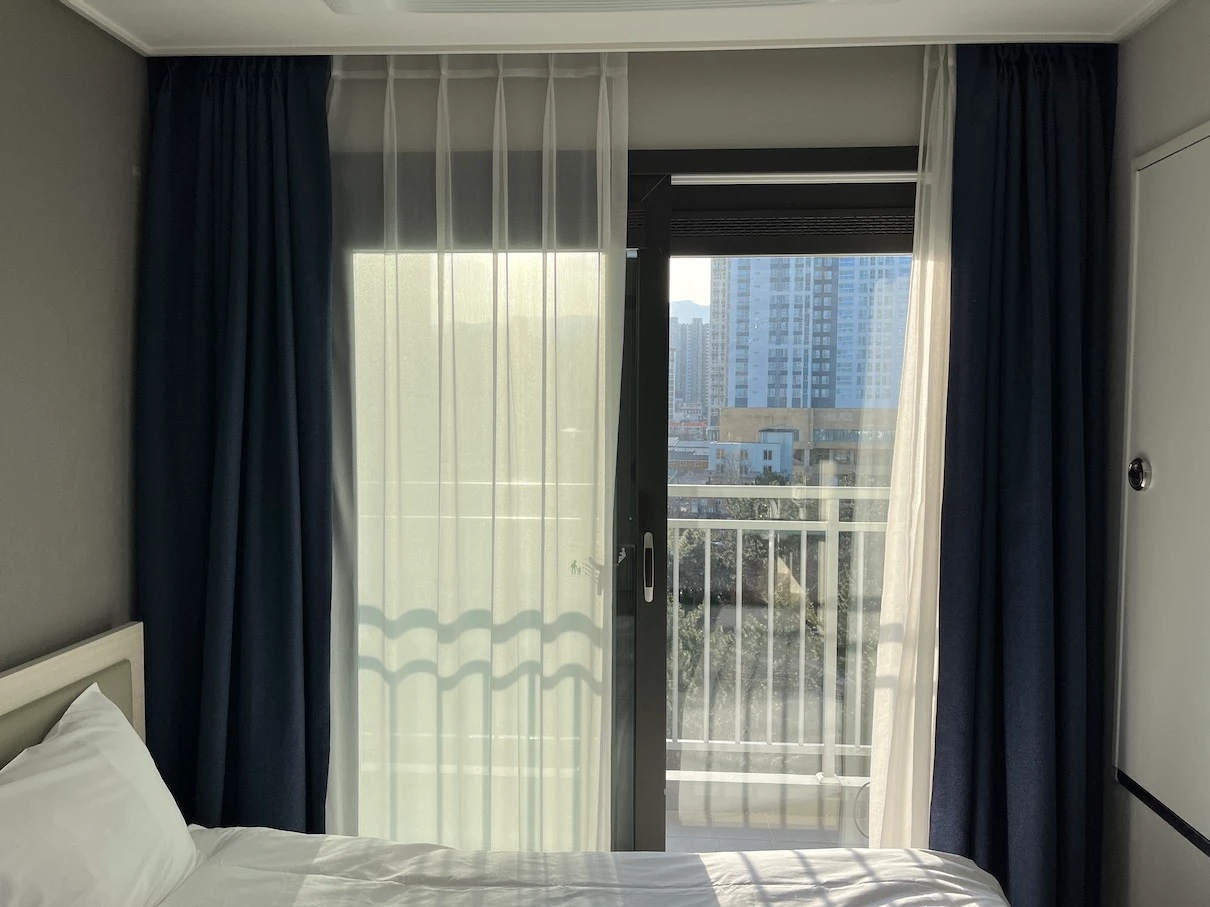 사진과 같이 햇빛이 들어오는 게 느낌이 좋습니다. 물론 객실에 따라 각도가 다르니 다른 객실은 느낌이 다르리라 생각합니다.