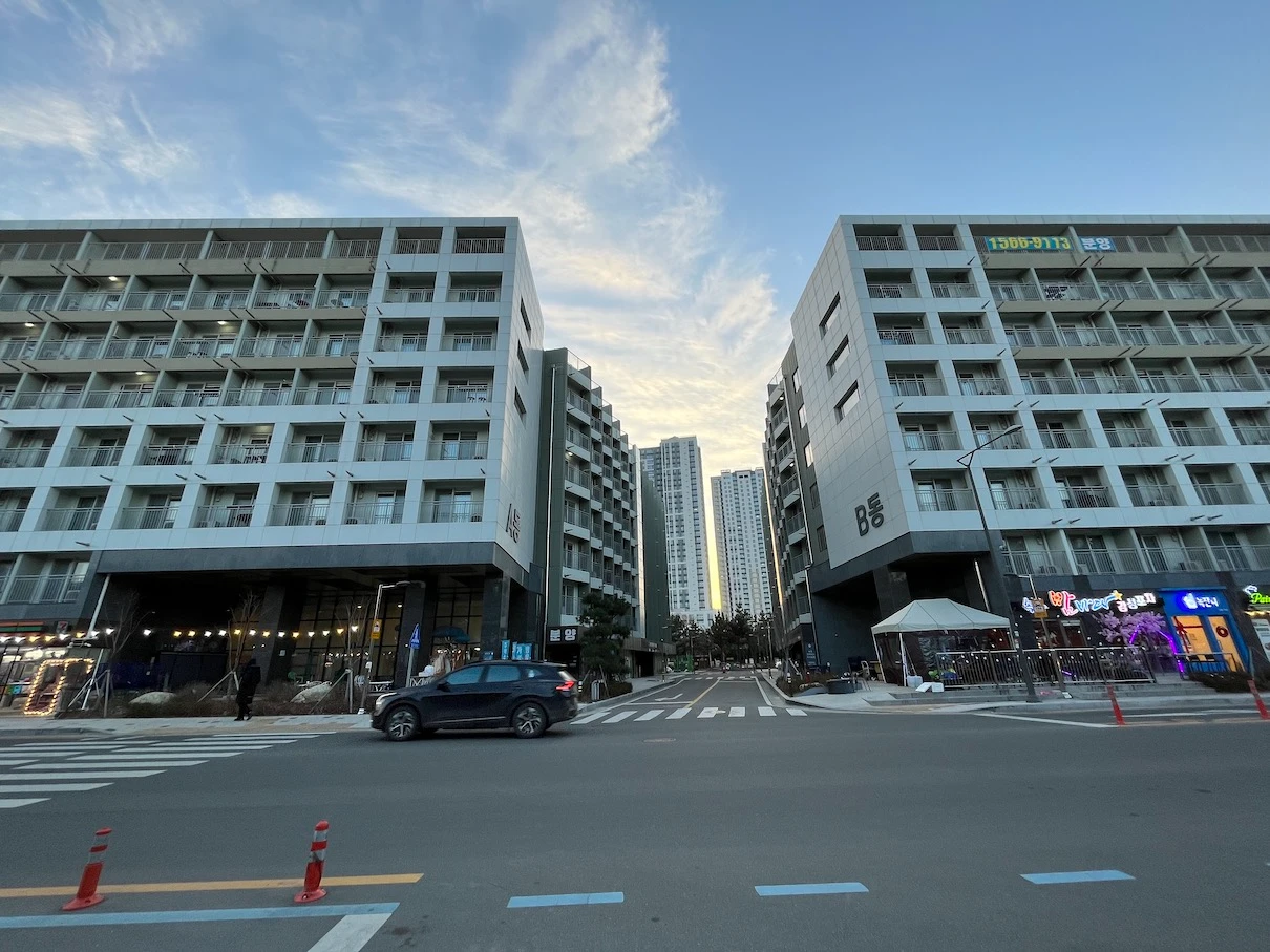 위와 같이 생긴 건물이 있는데, A동에서 세븐일레븐 왼쪽에 있는 문으로 들어가면 프론트데스크가 있습니다.
