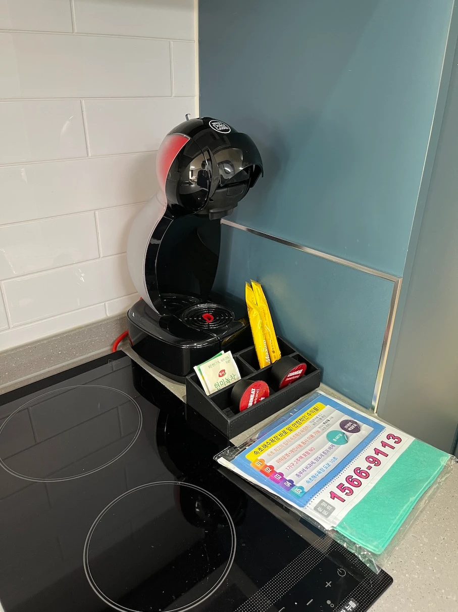 어메니티 : 일회용품은 제공하지 않음 / 생수, 캡슐커피, 믹스커피, 녹차티백 각 2개씩 제공